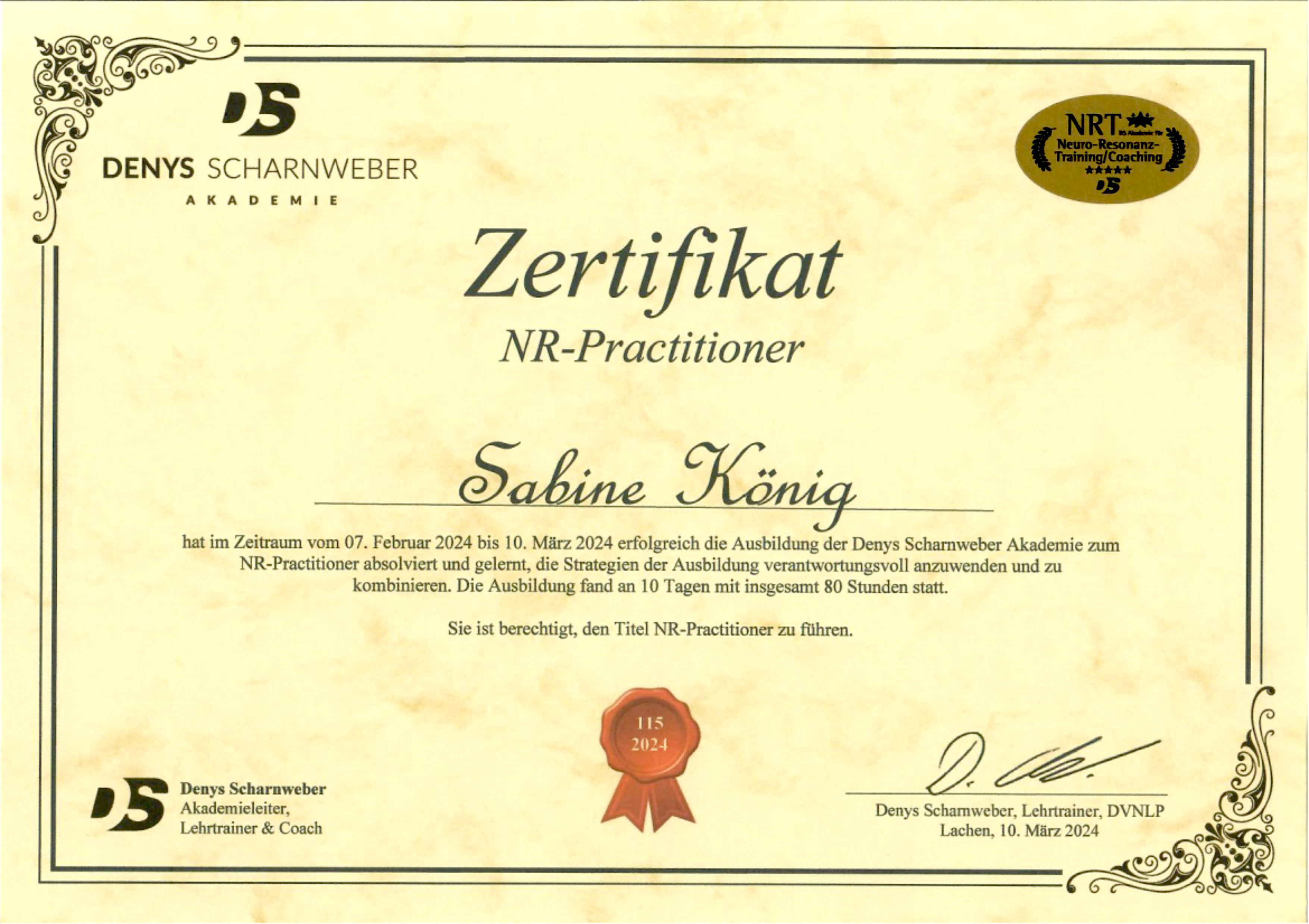 - Neuroresonanz Practitioner-Zertifikat seit 2024