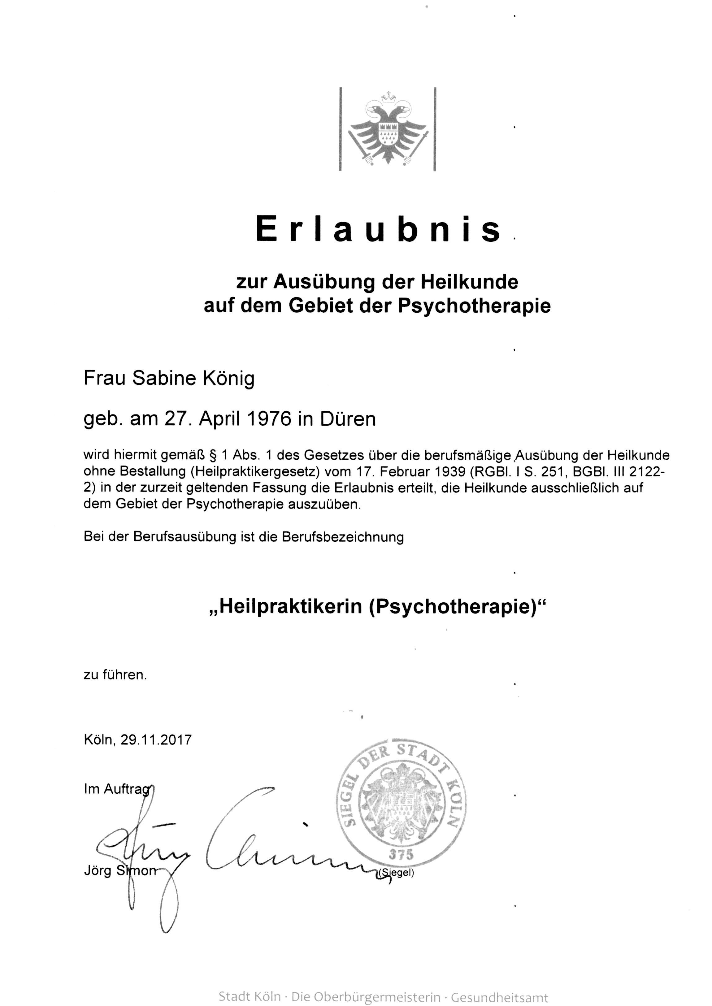 - Heilpraktikererlaubnis-Zertifikat seit 2017