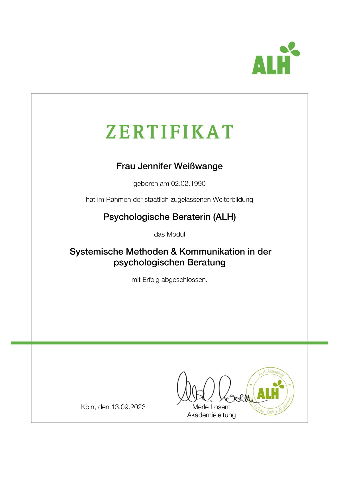 - Zertifikat Systemische Methoden & Kommunikation-Zertifikat seit 2023