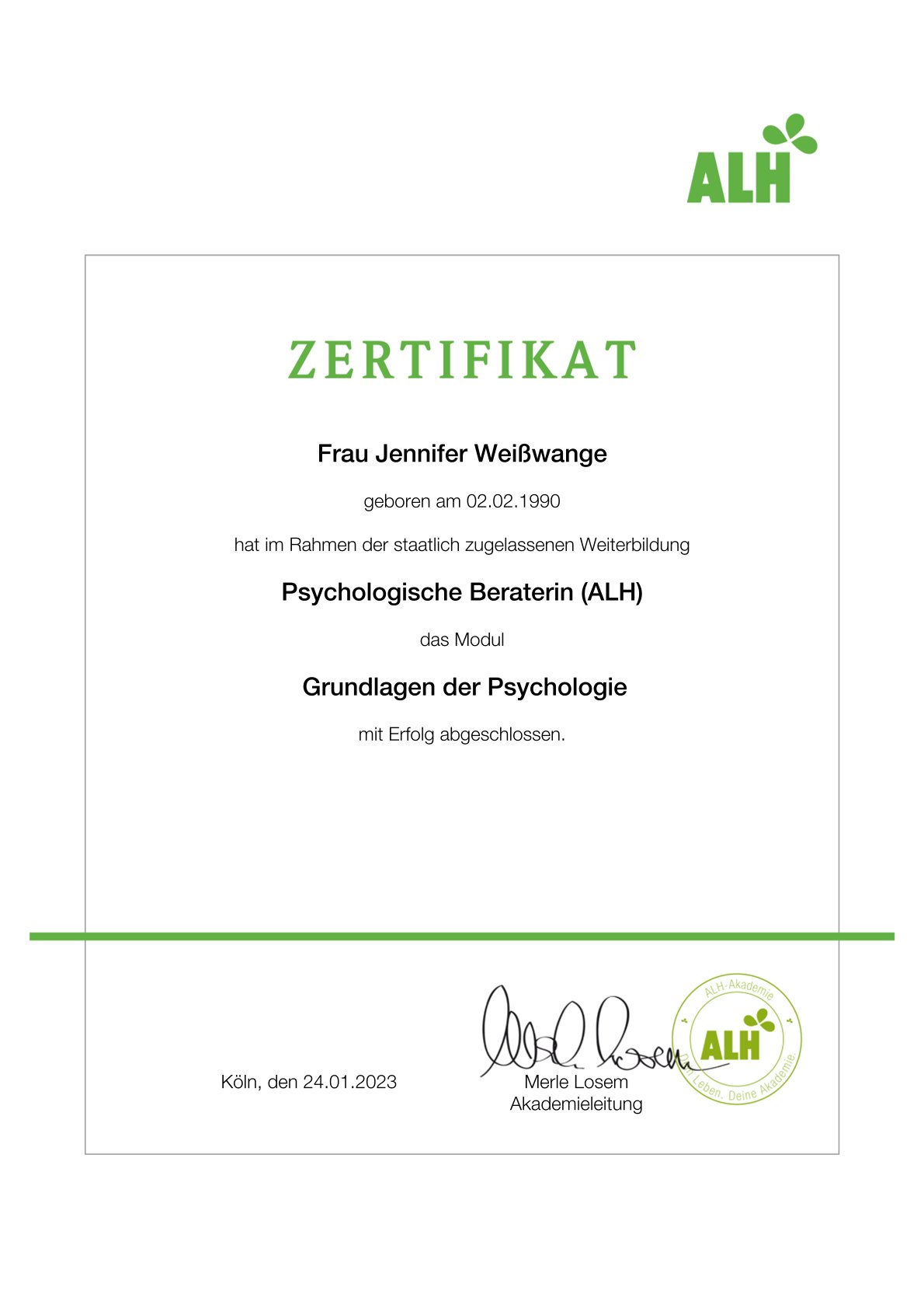 - Zertifikat Grundlagen der Psychologie-Zertifikat seit 2023