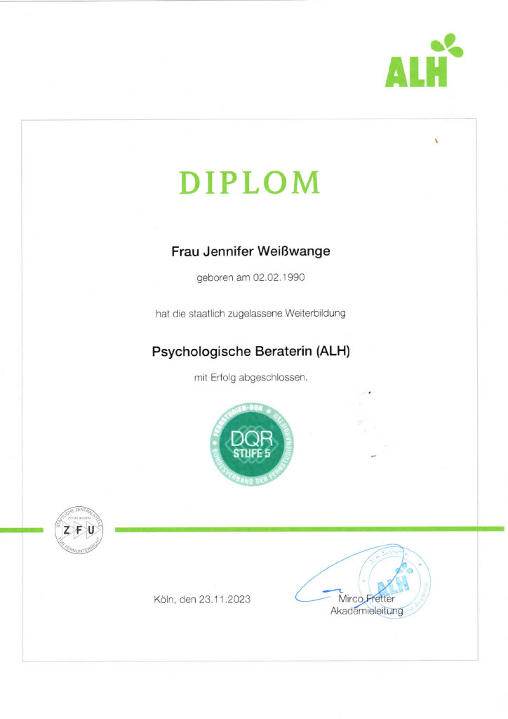 - Diplom Psychologische Beratung-Zertifikat seit 2023