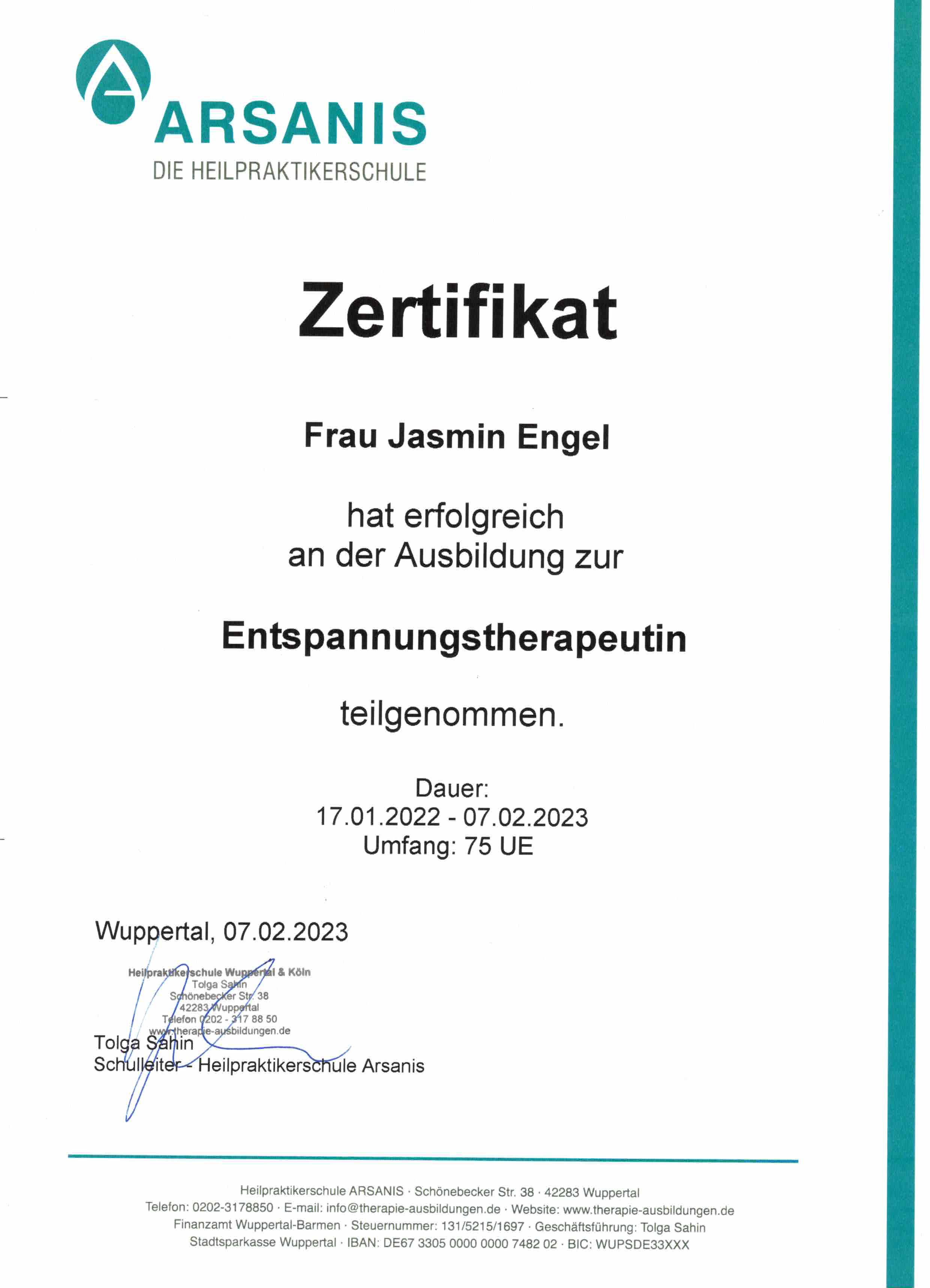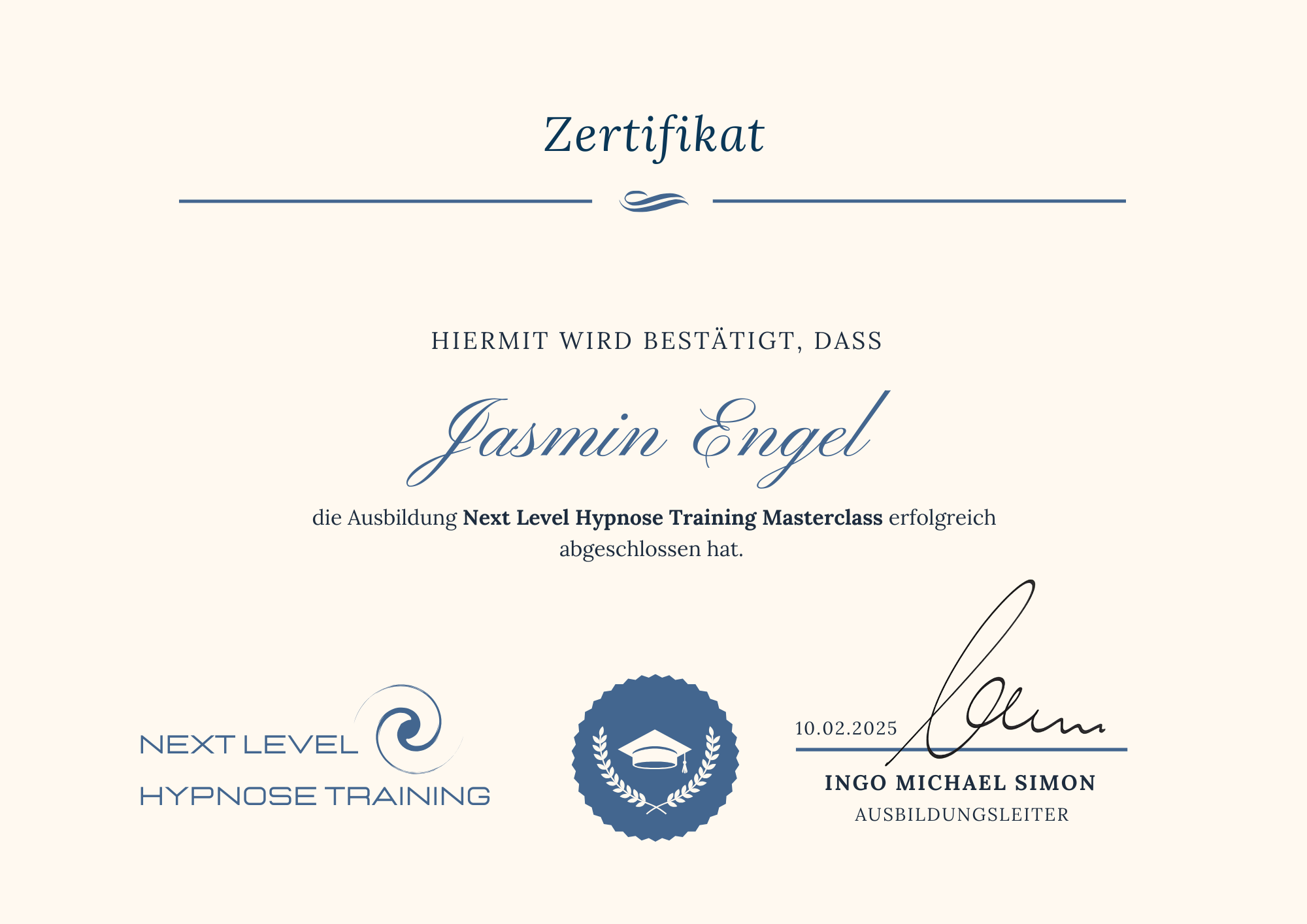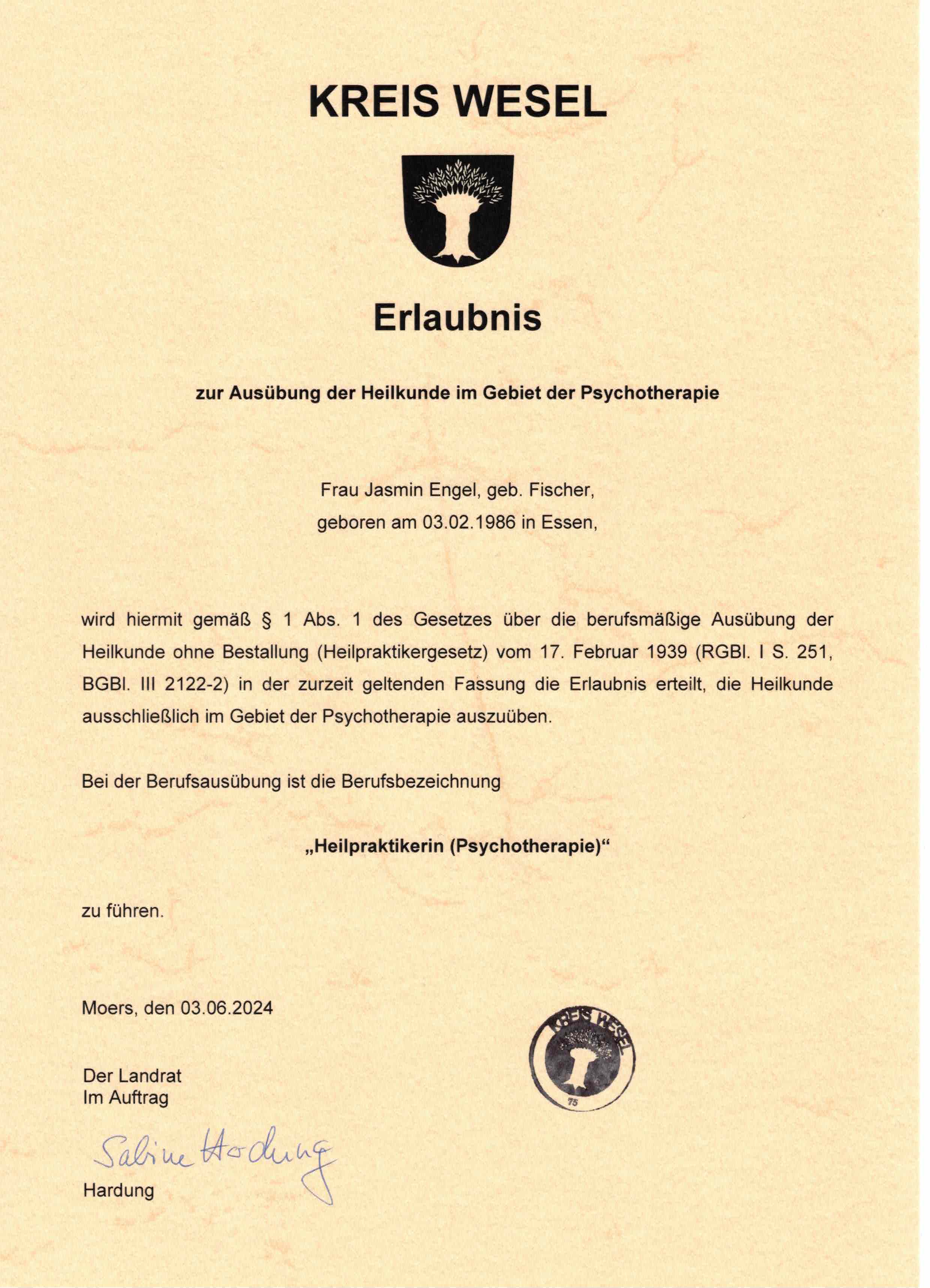 - Heilpraktiker (Psychotherapie)-Zertifikat seit 2024
