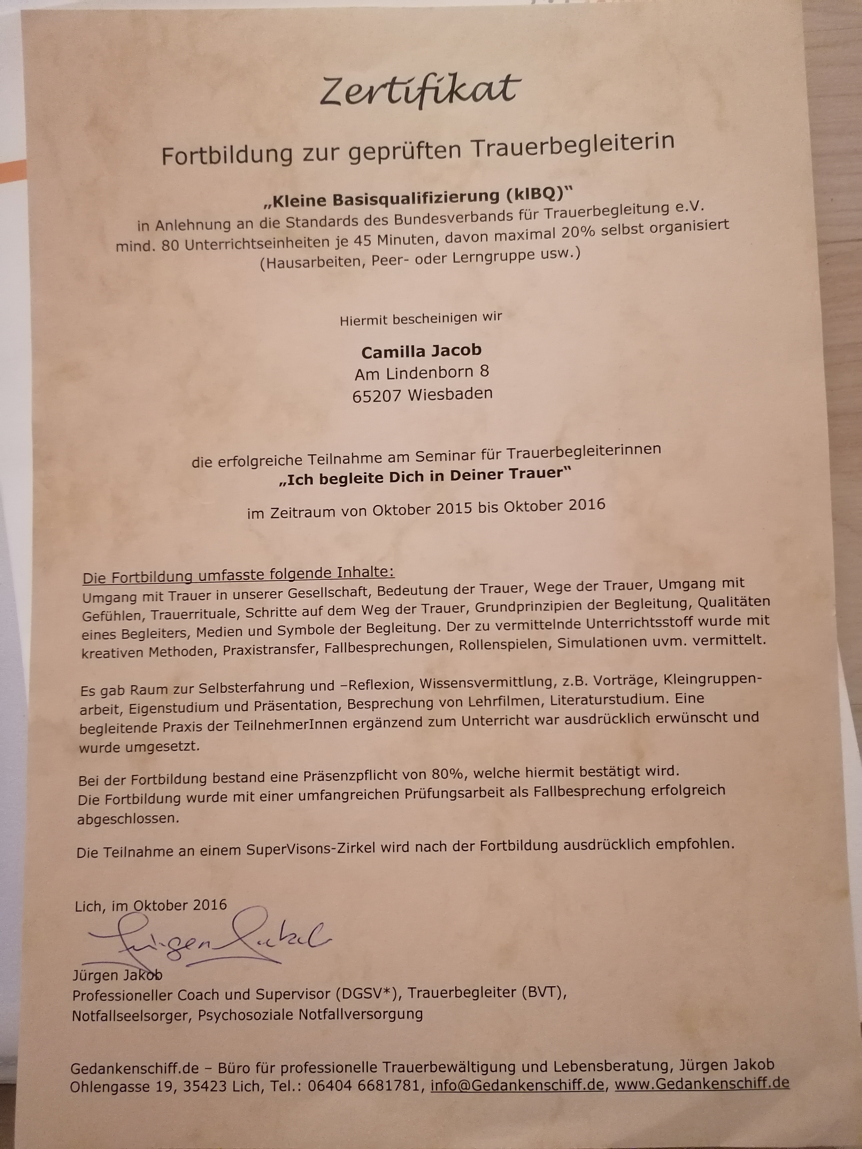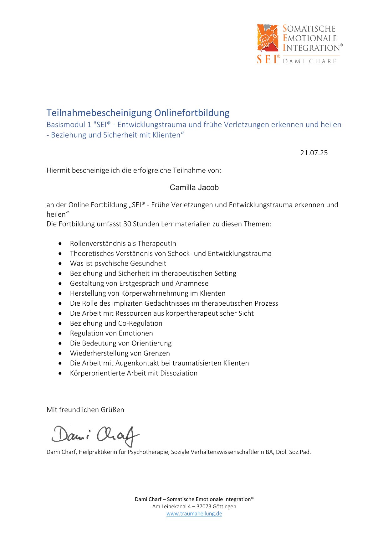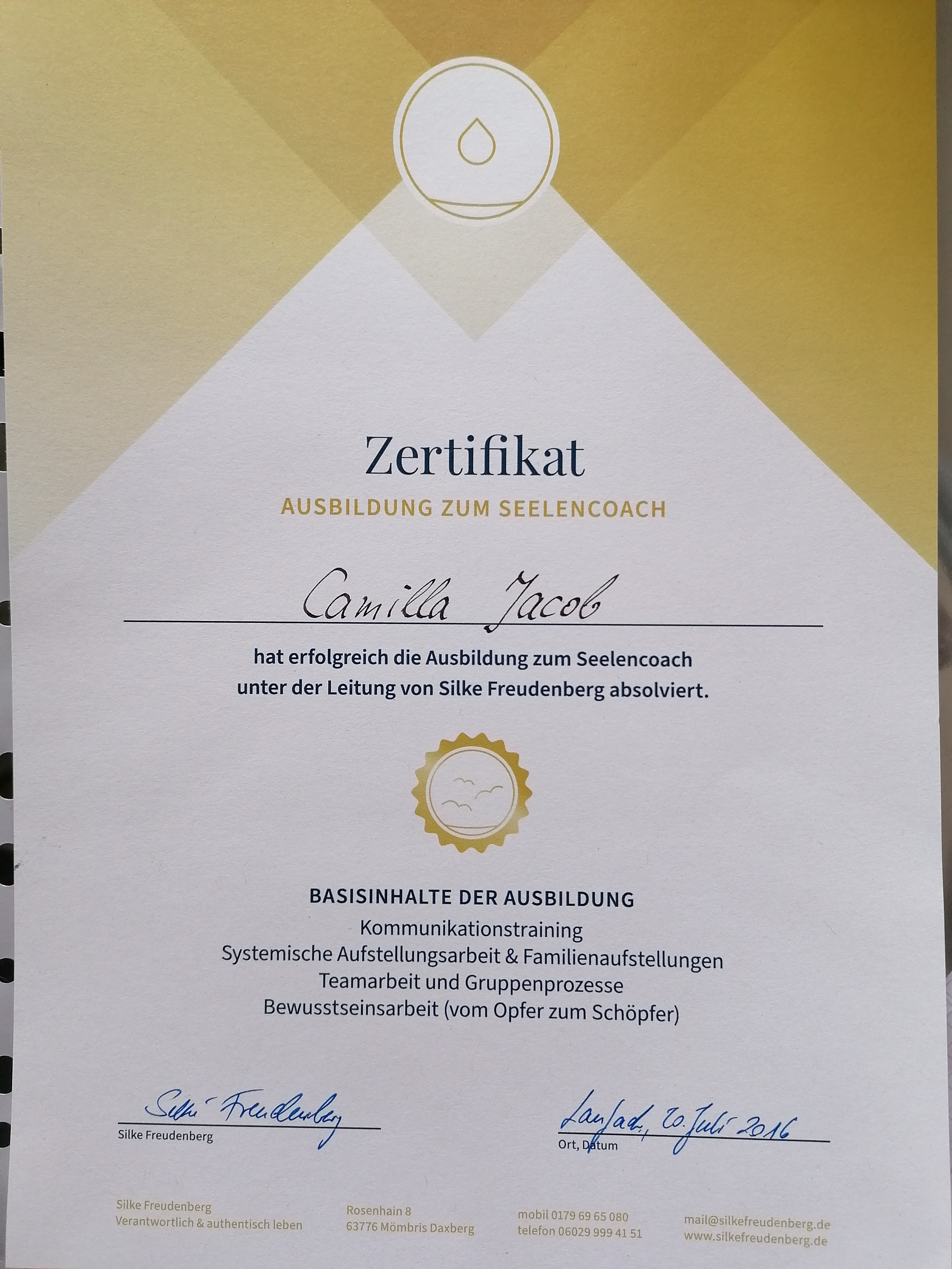 - Heilpraktikerin für Psychotherapie-Zertifikat seit 2024
