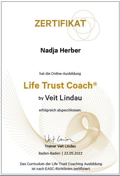 - Life-Trust-Coach by Veit Lindau-Zertifikat seit 2022