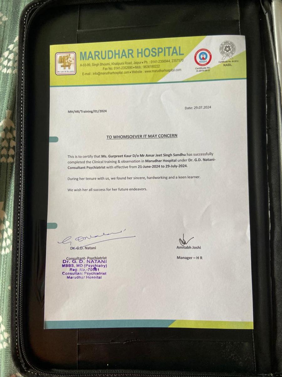 • Vivekanand Institute of mental health and neuro sciences certificate since 2022