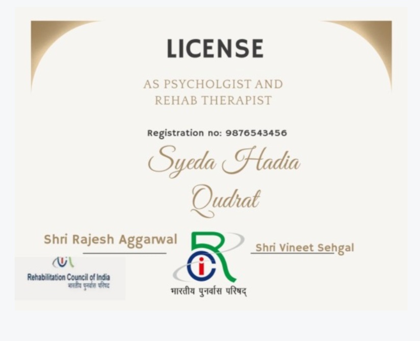 Hi i am clinical psychologist, art and rehab therapist by profession. I have been in this field since 5 years. I have done msc in behavioral sciences. I also hold a diploma in clinical psychology.