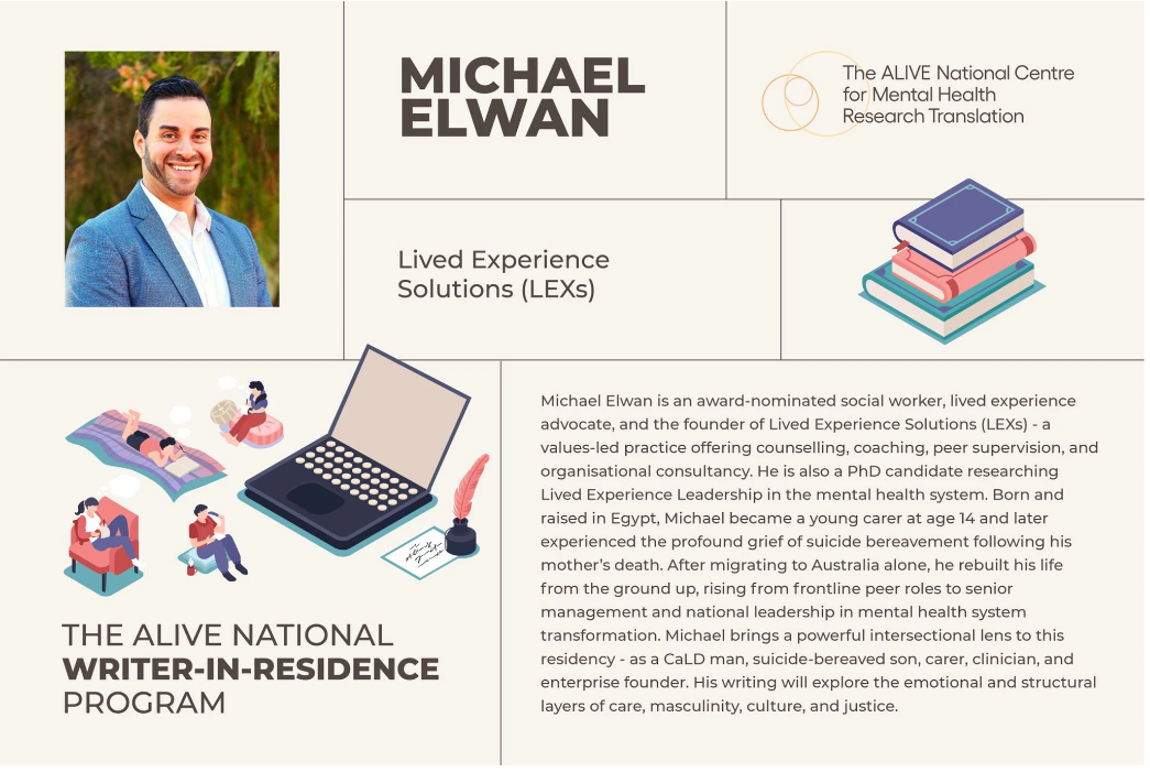 I’m Michael Elwan, an Award-Winning Accredited Social Worker (AASW) and therapist based in Perth, WA. I offer online therapy across Australia, alongside professional supervision for social workers and peer workers. My work draws on more than 15 years’ experience across mental health, psychosocial disability, suicide prevention, and service leadership. It is also shaped by lived and living experience; caring for family members, migration, grief, and suicide bereavement within my family in Egypt. These experiences inform how I work with care, humility, and respect.