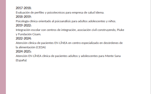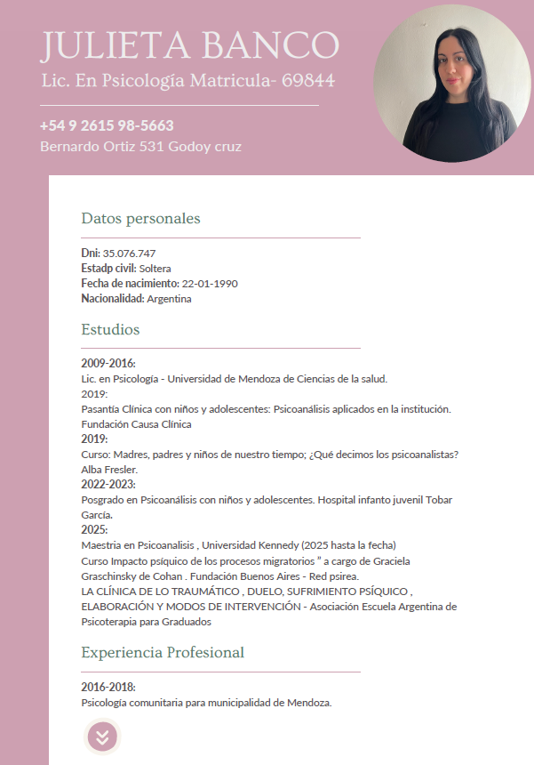 icenciada en psicología , recibida de la Universidad de Mendoza.