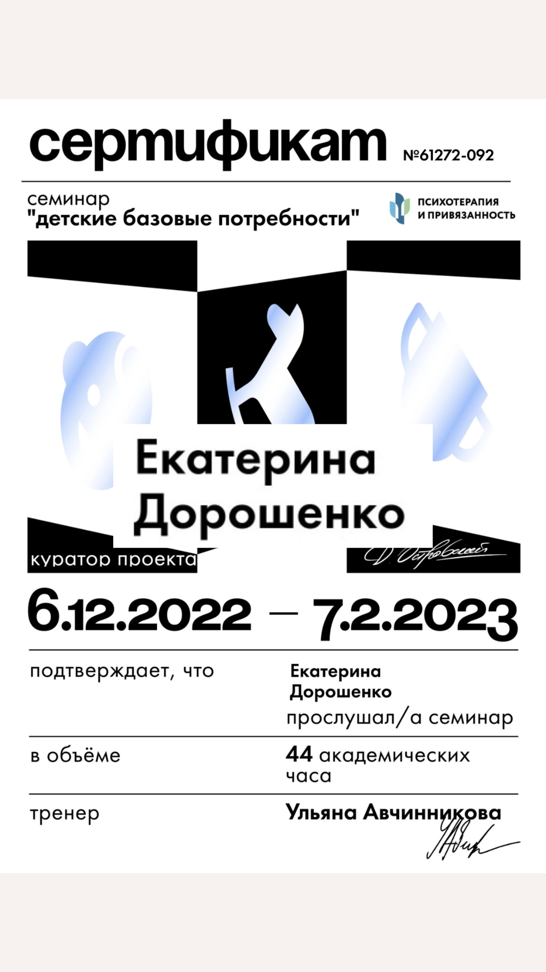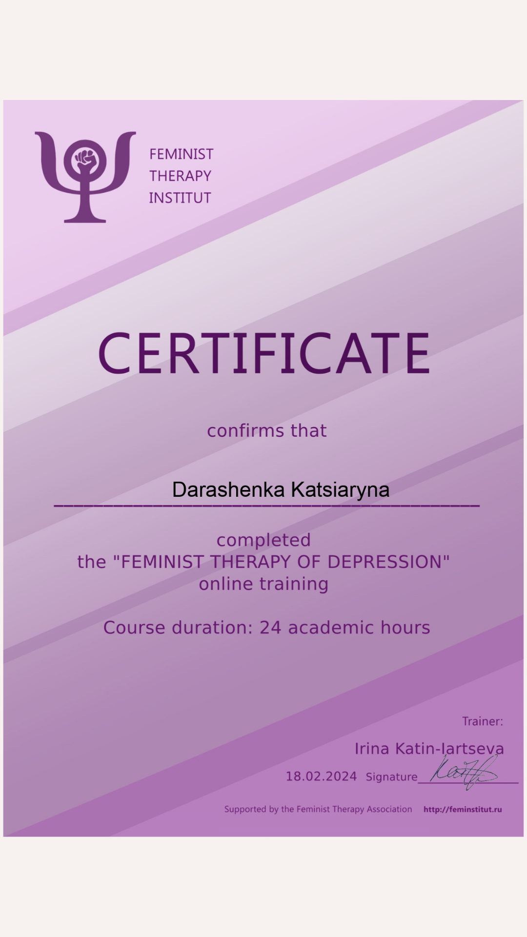 - Psychotherapy for Adults with ADHD certificate since 2024