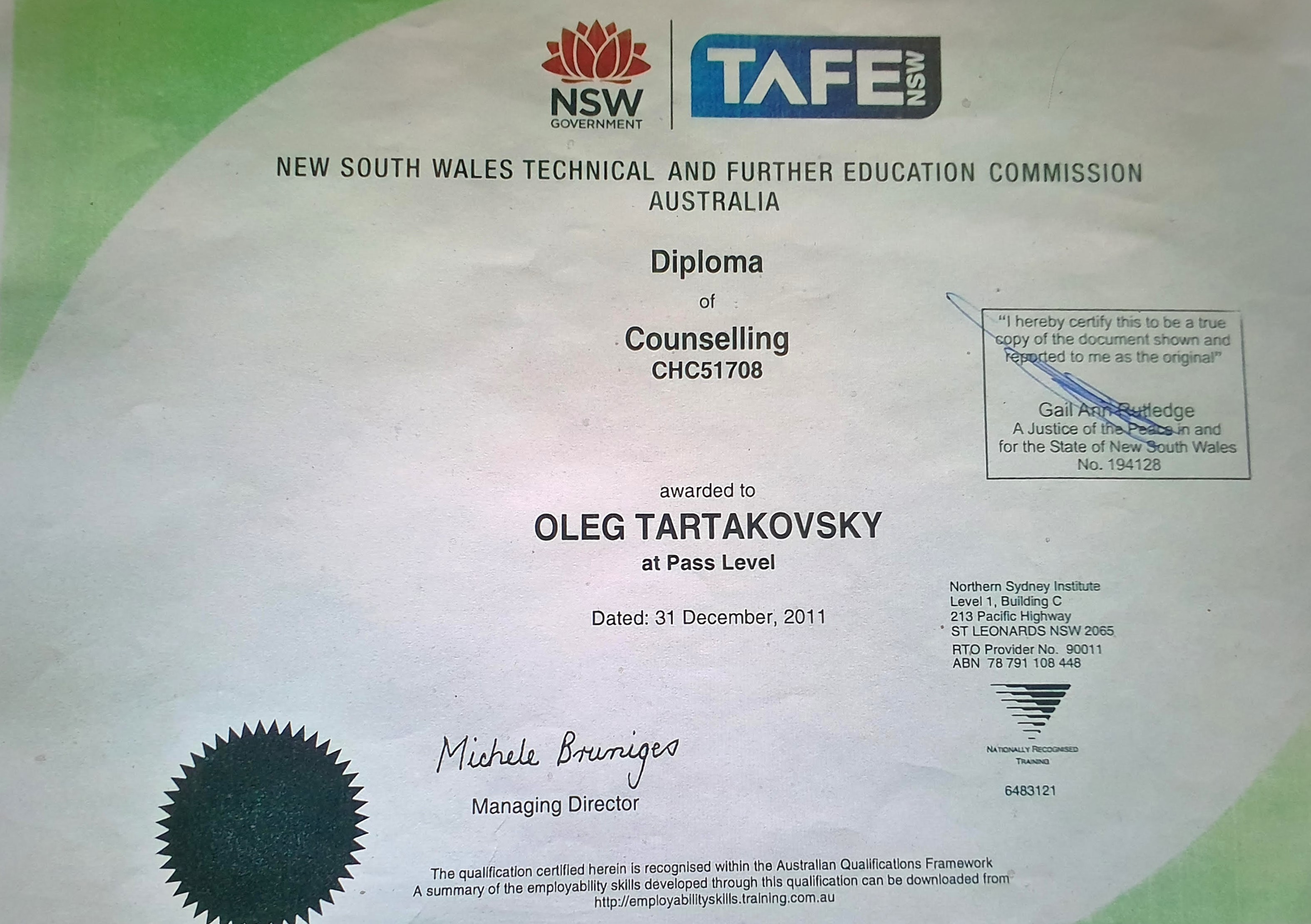 I hold a Double Diploma in Counselling, Welfare & Community Services (TAFE Sydney) and am completing my Bachelor of Social Work at UNE, Armidale. I’ve supported clients across Australia, Europe, and Israel, offering culturally sensitive therapy tailored to each person’s story.