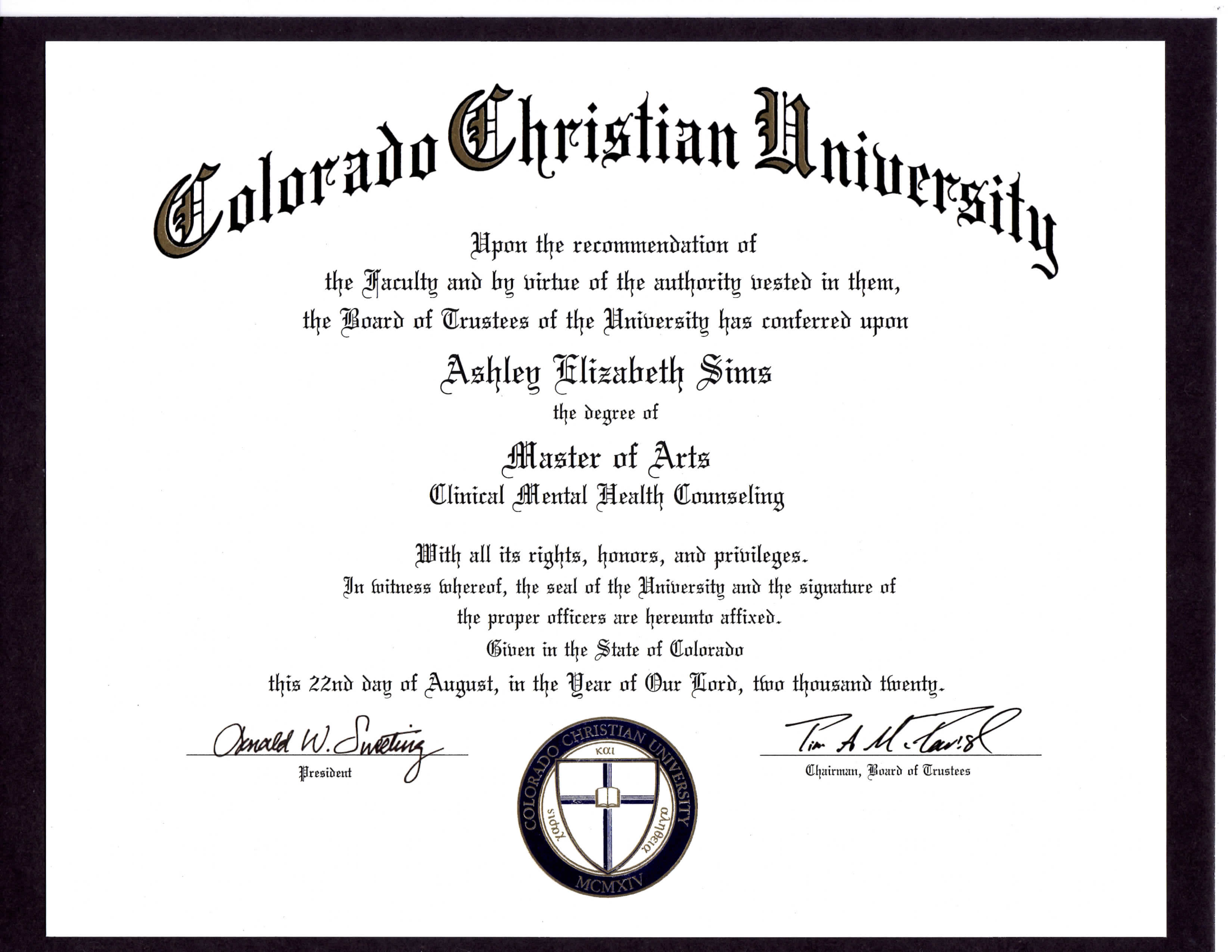- Colorado Christian University in 2020