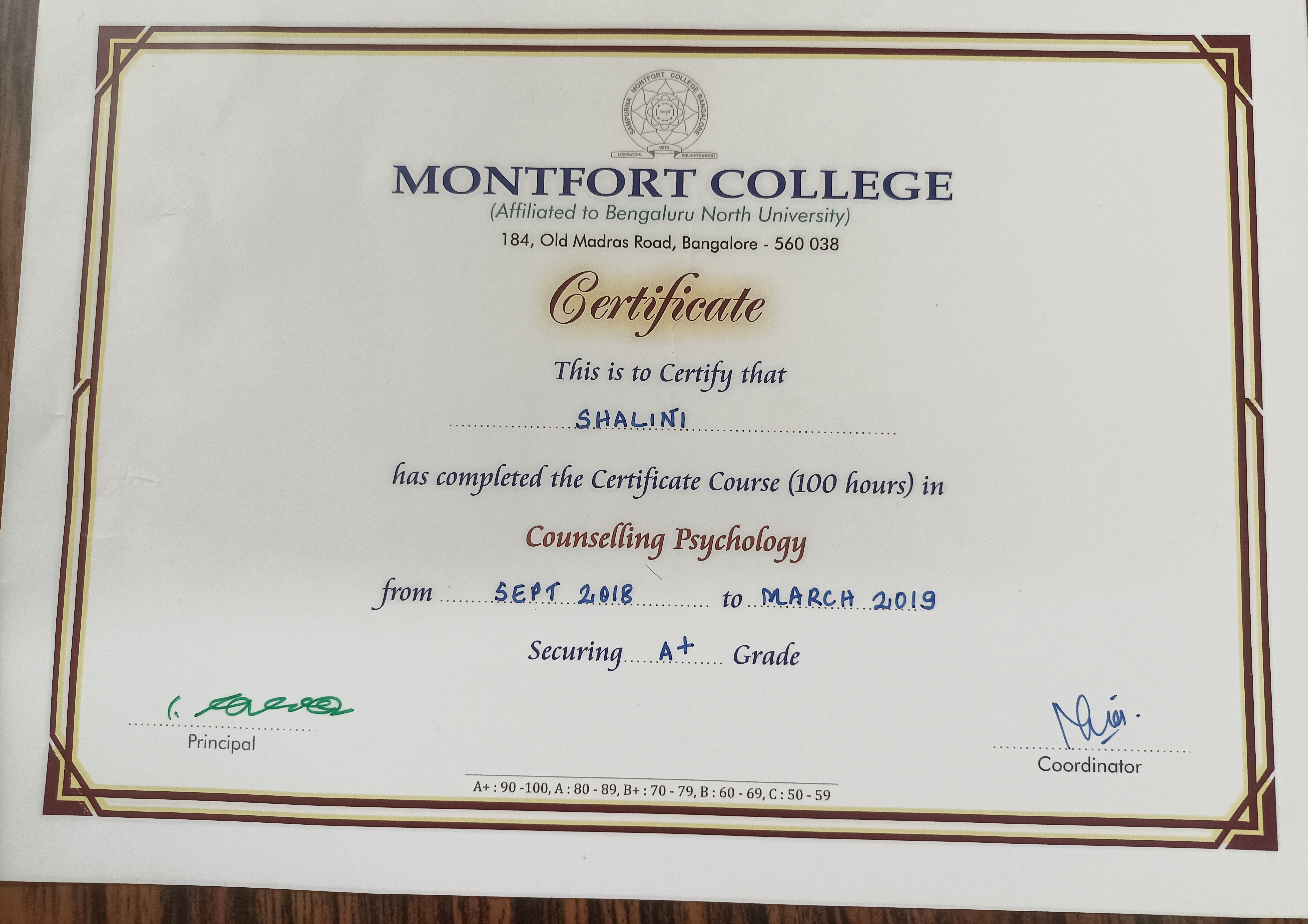 Beyond MA , is presently pursuing MSc in Counselling and Family Therapy in order to hone the required relevant skills and has researched on the effect of Menopause on the Quality of Life of middle aged women , in Bangalore , as mandated in the MSc program