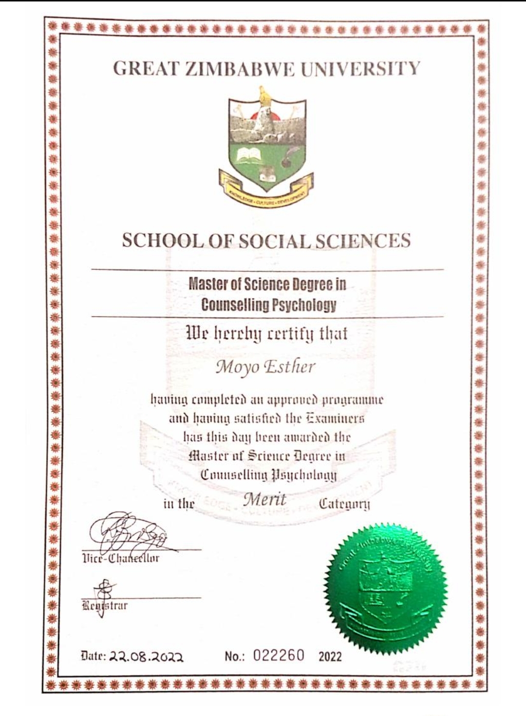 - Great Zimbabwe University in 2022