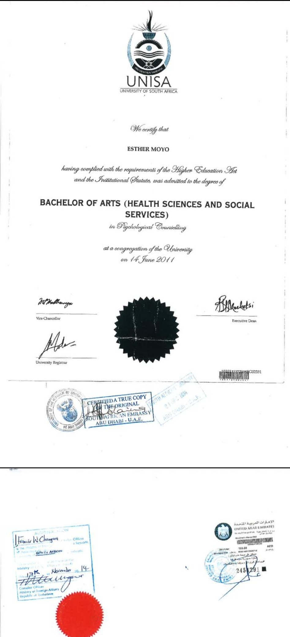 - University of South Africa in 2011