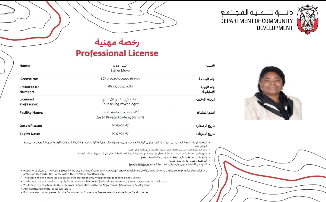 I am a licensed counselling psychologist (licensed by Abu Dhabi Department of Community Development (ADDCD) and I have been practicing in UAE for 11 years as a School Counsellor.