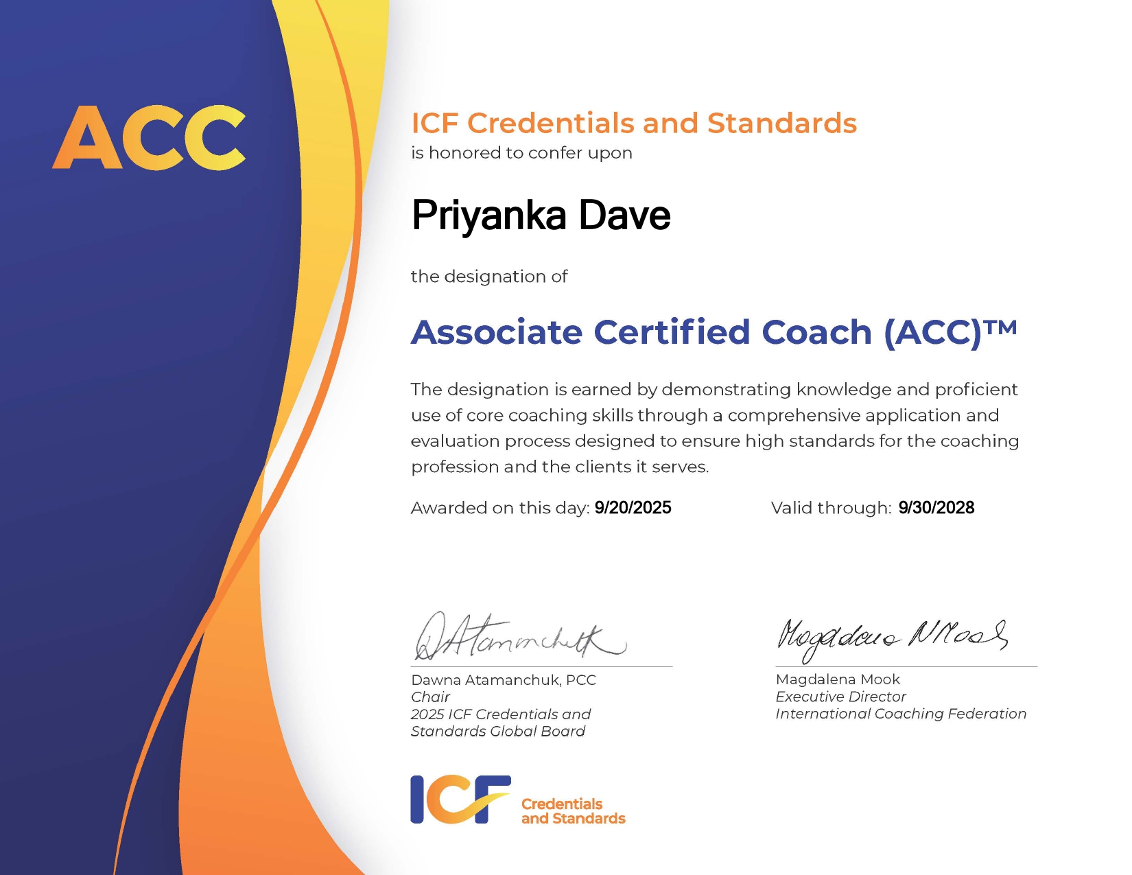 - Associate Certified Coach (ACC) certificate since 2025