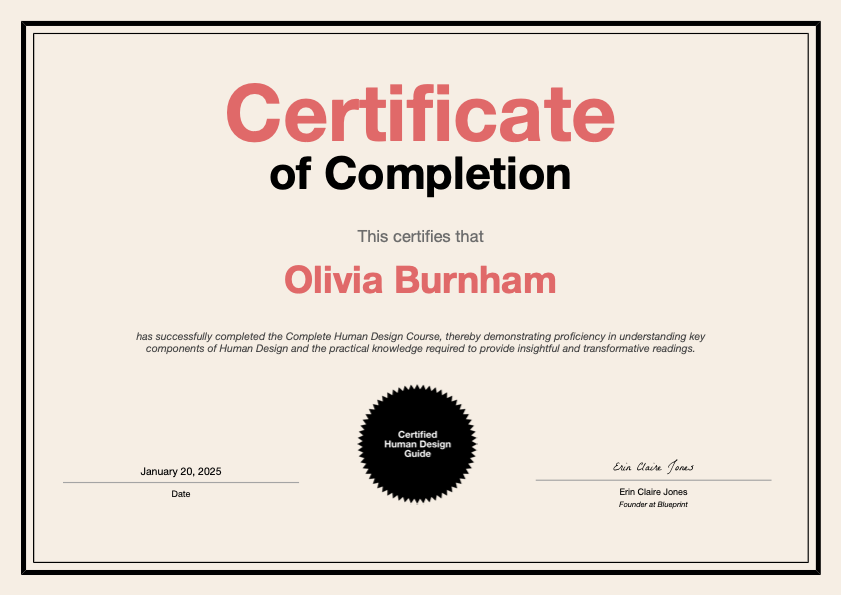 - Certified Human Design Reader certificate since 2025