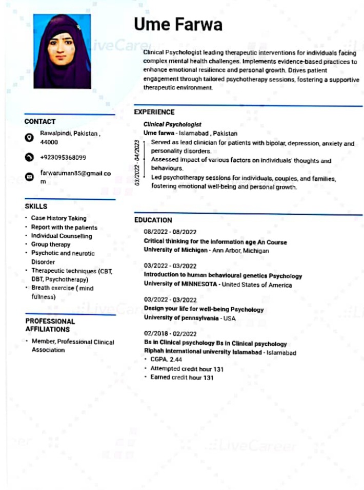 Clinical Psychologist, Psychoanalyst, Psychologist and Psychotherapist