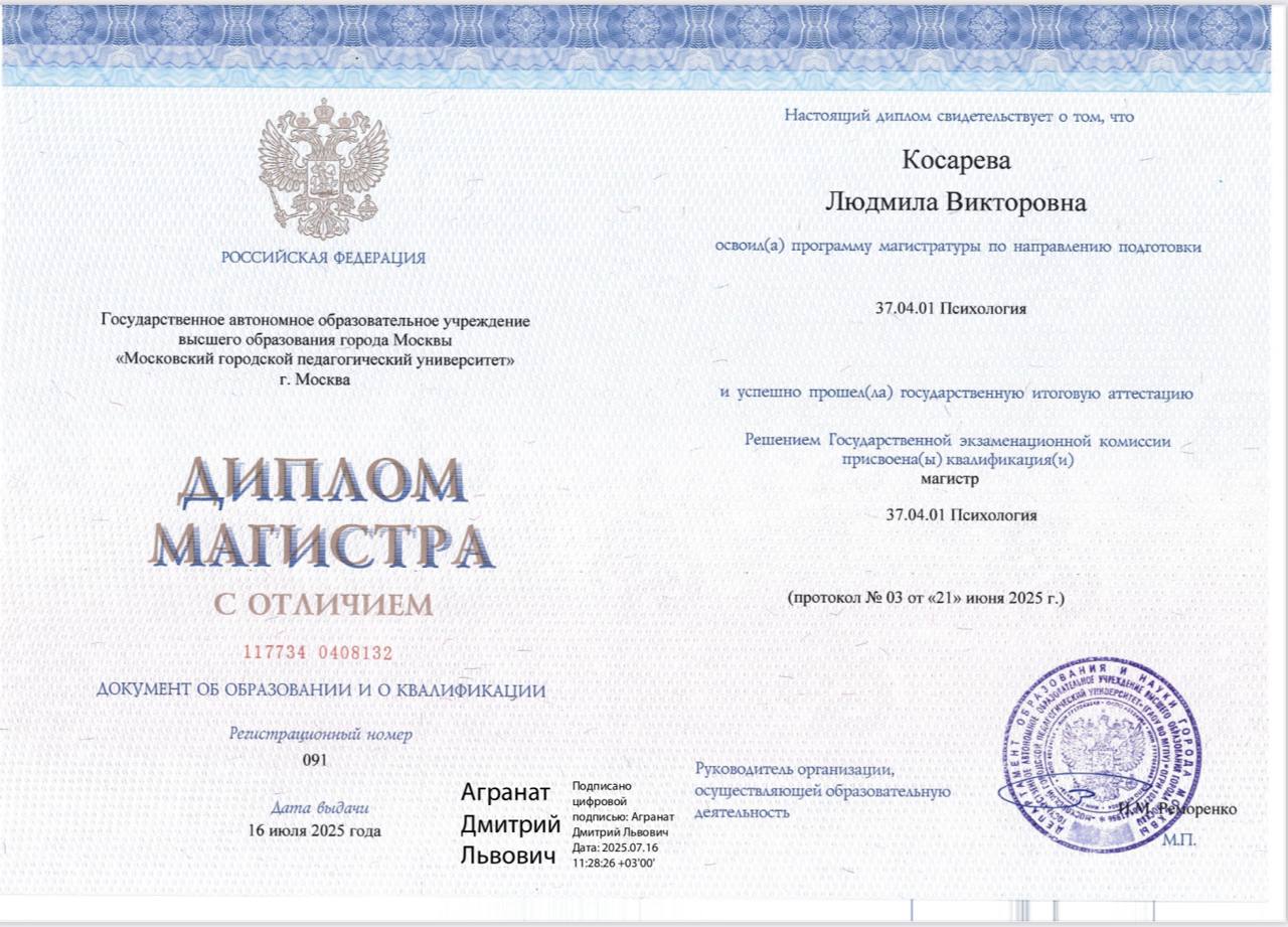 - Master degree in Psychology certificate since 2025