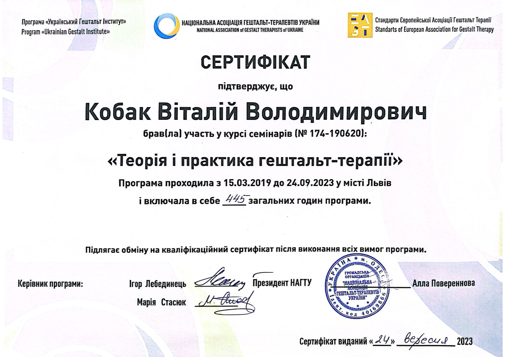 Hello, I am Vitaliy, a Gestalt therapist with a private practice since 2021.