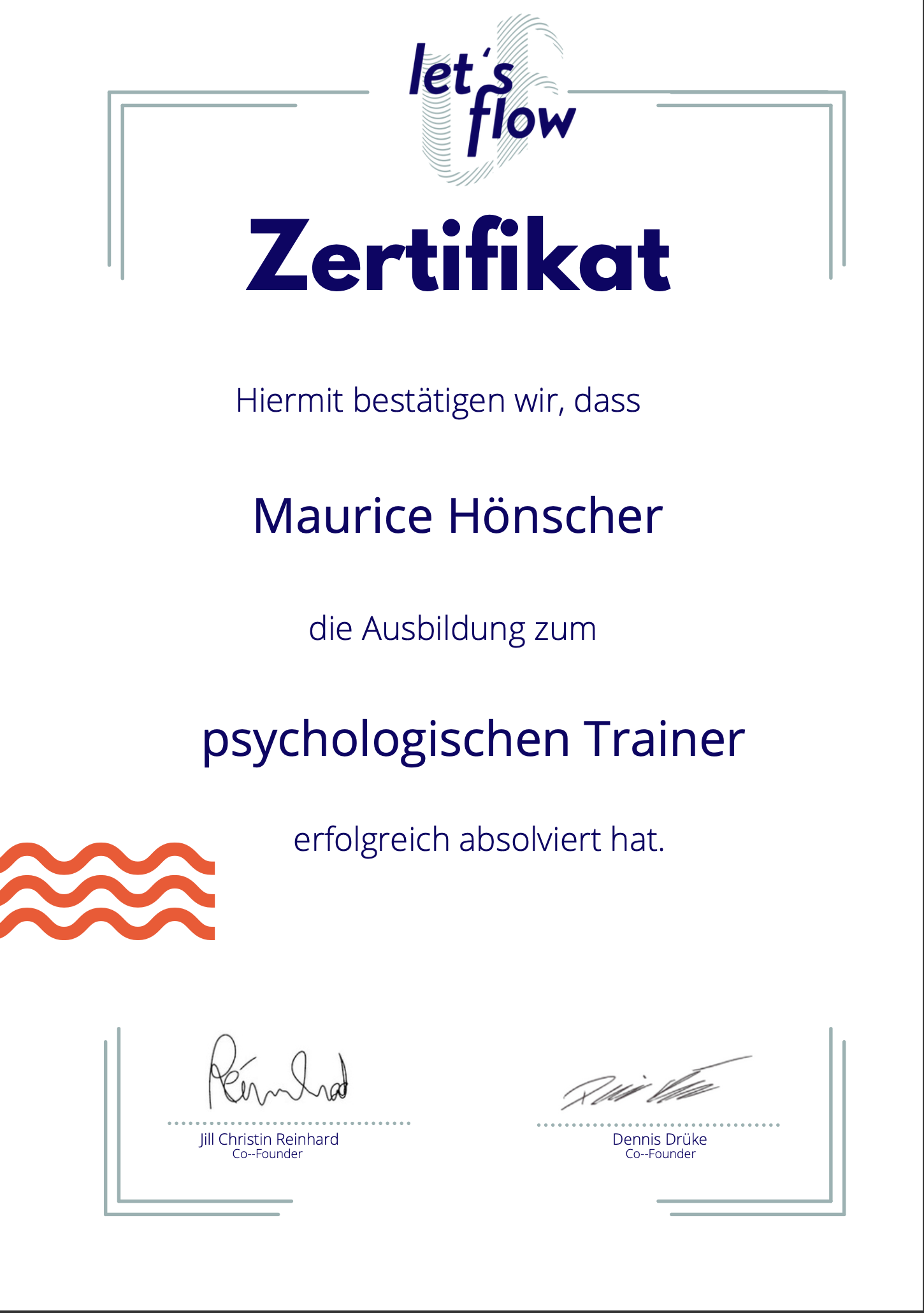 - Psychological Trainer for Resilience & Stressmanagement - Lets Flow GmbH (2024 - 2026)