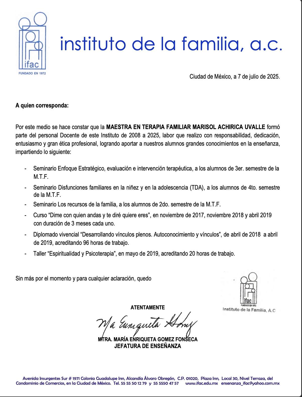 • Instituto de la Familia AC (IFAC) in 2002