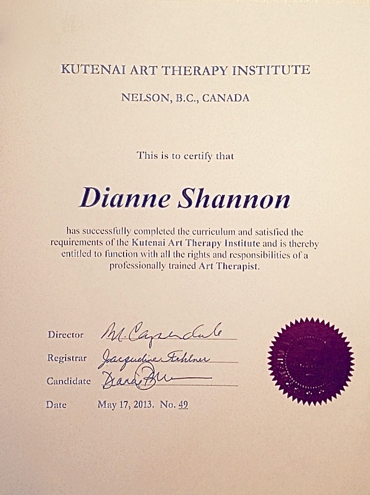 - Kutenai Art Therapy Institute (graduate-level diploma) in 2012