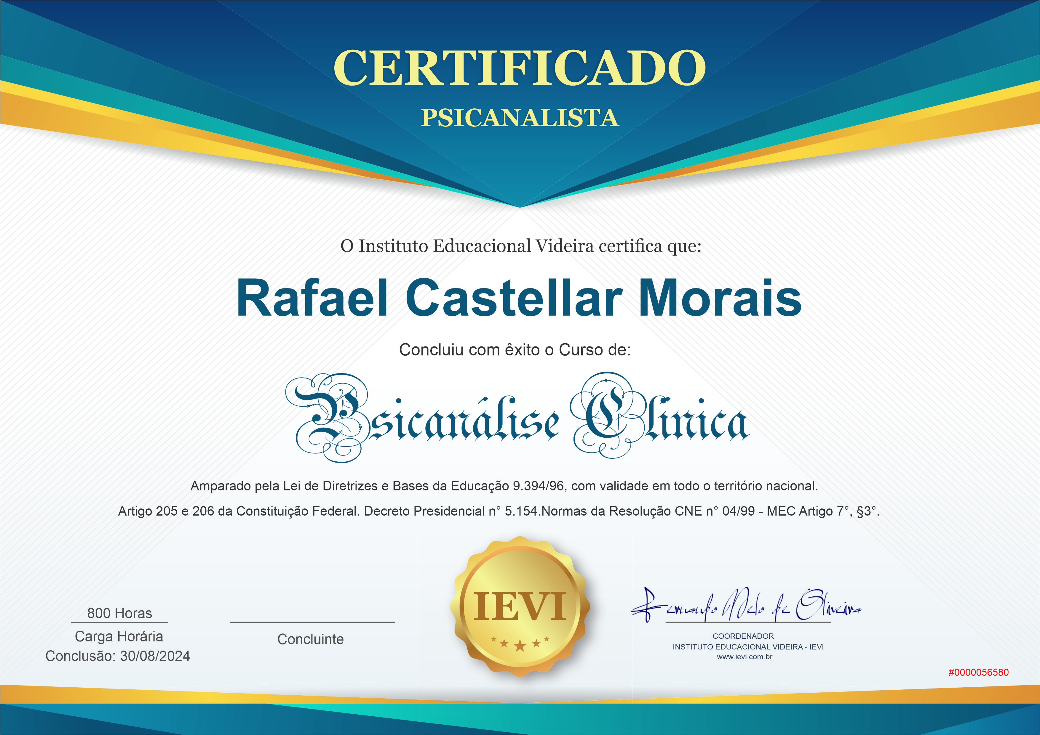 - Certificado Psicanálise clínica - instituto videira desde 2024