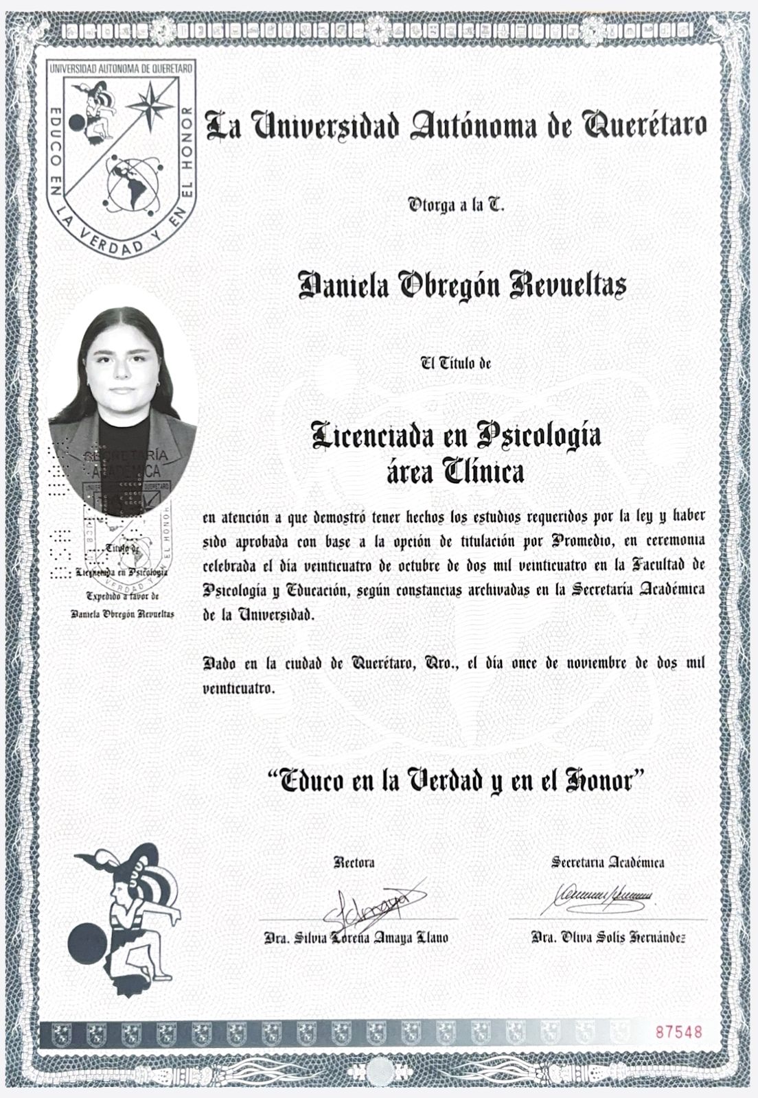 Soy titulada en psicología clínica, con diplomados y certificaciones en psicología del desarrollo, trauma, violencia sexual, psicoterapia psicoanalítica, entre otras. Y me interesa seguir aprendiendo para poder dar el mejor apoyo a mis pacientes.