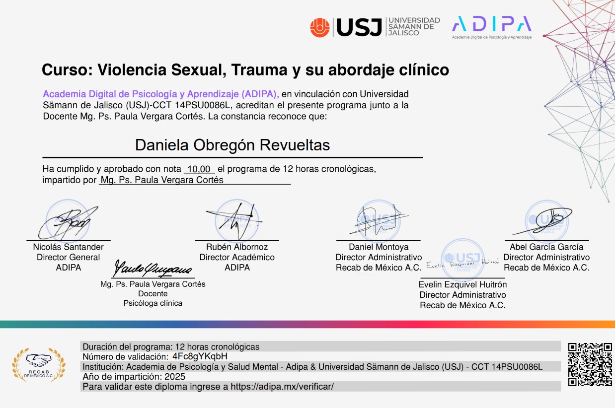 - Certificado Violencia sexual, trauma y su abordaje clínico desde 2025