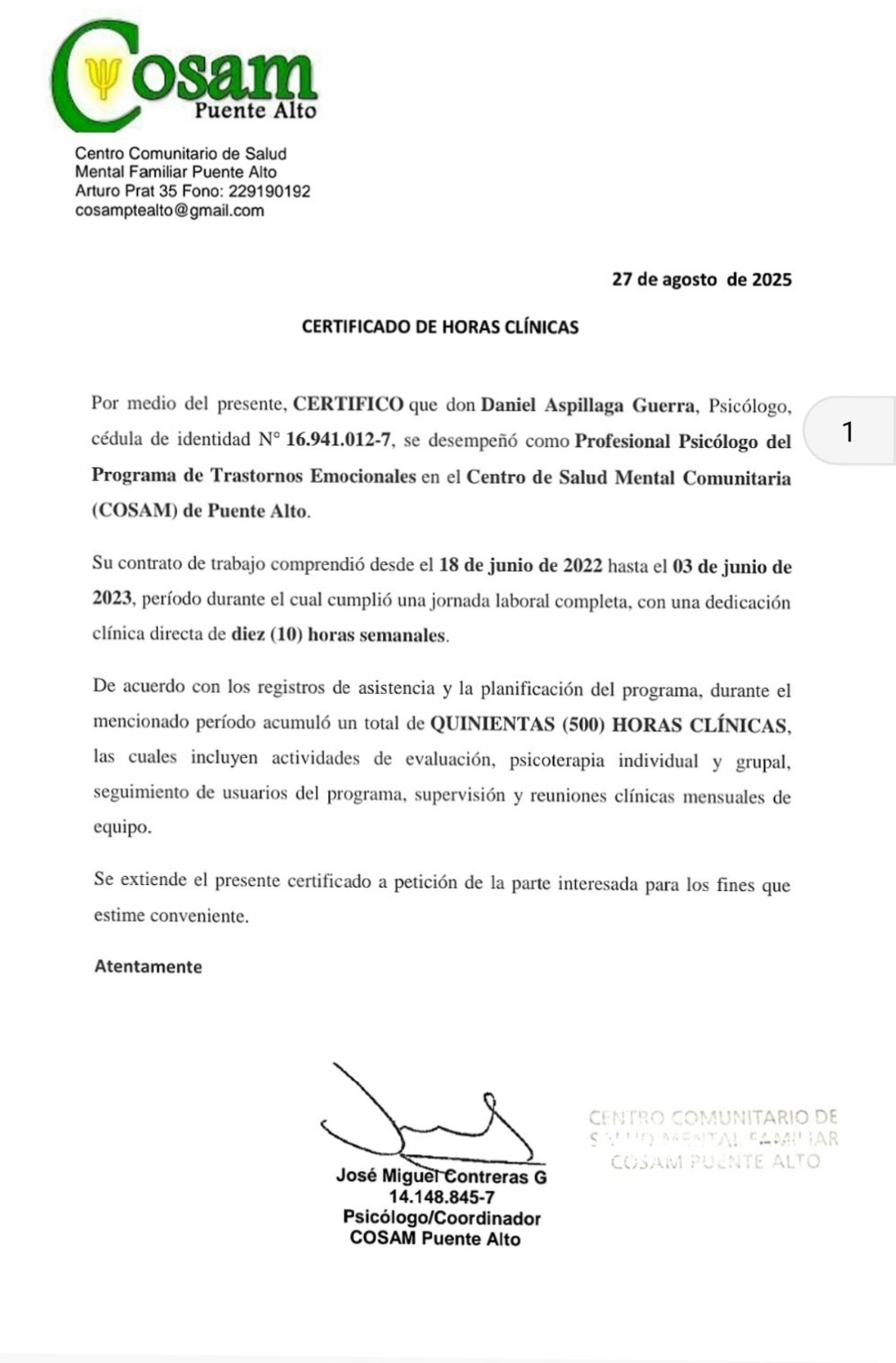 - Certificado Certificado 500 horas clínicas desde 2024