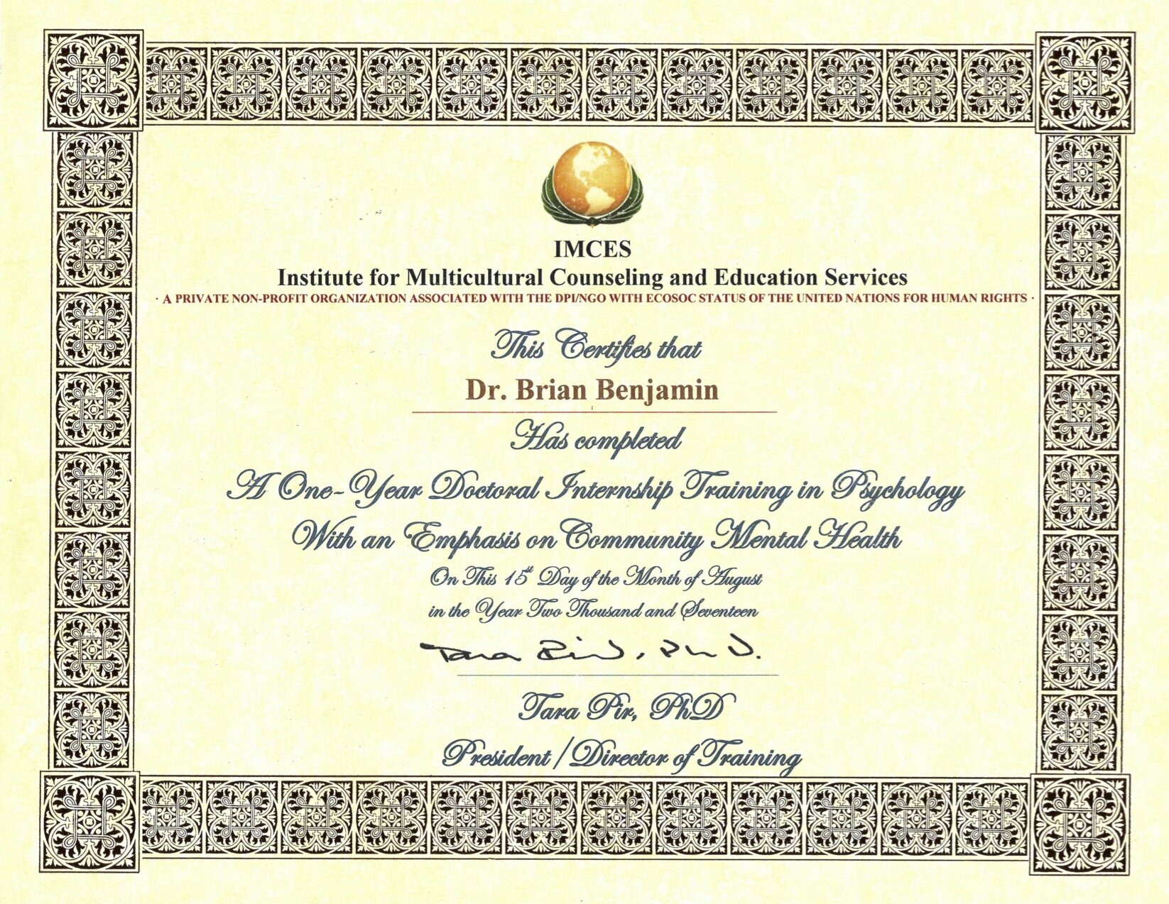 - Certificado IMCES Formación de prácticas doctorales de un año en psicología desde 2017