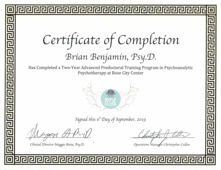 - Certificado Formación postdoctoral avanzada de dos años en psicoterapia psicoanalítica desde 2019