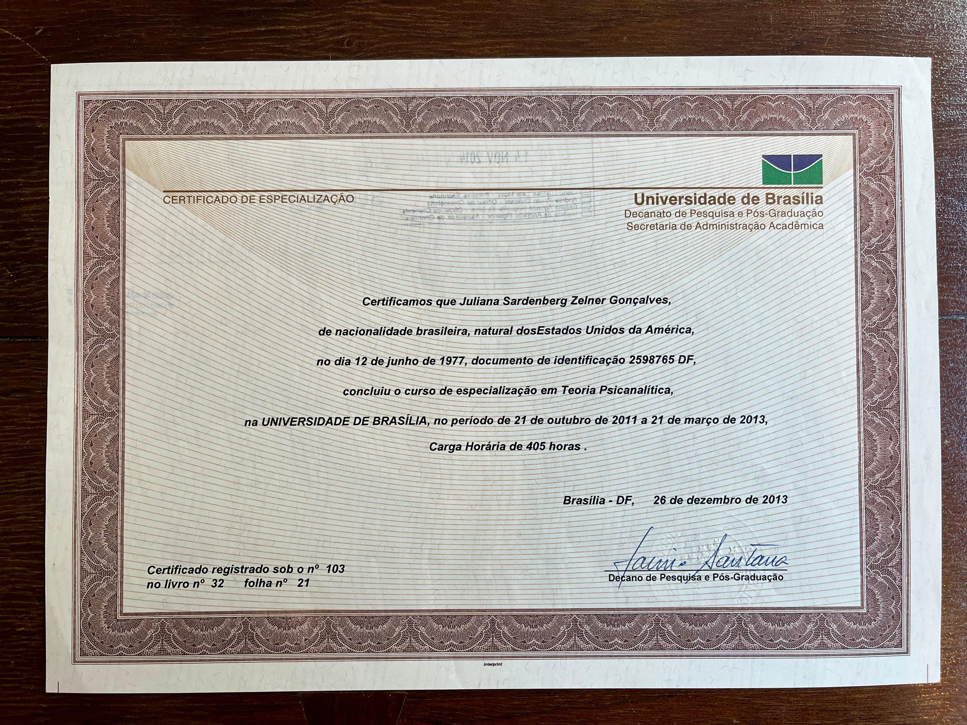 - Certificado Certificado de especialización en Teoría Psicanalítica desde 2013