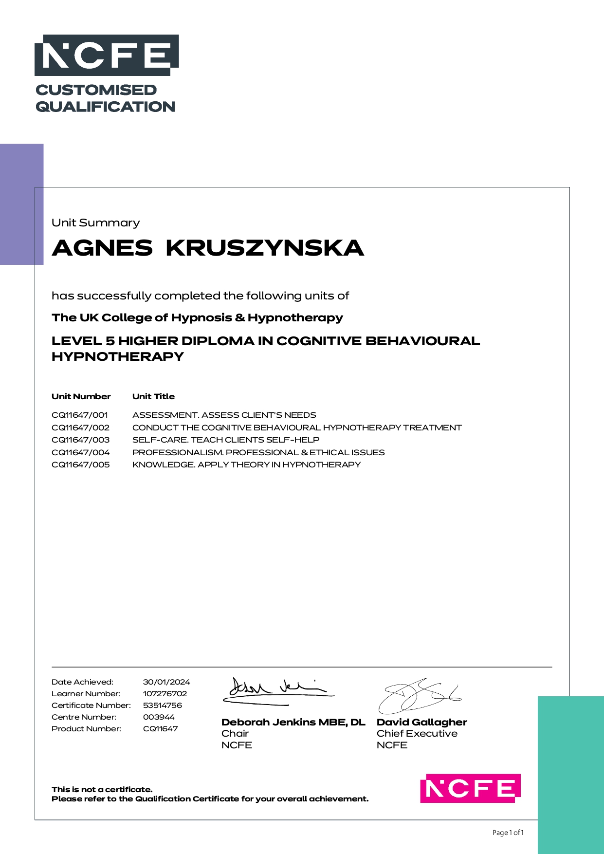 - Certificado Higher Diploma en Hipnoterapia/TCC desde 2023