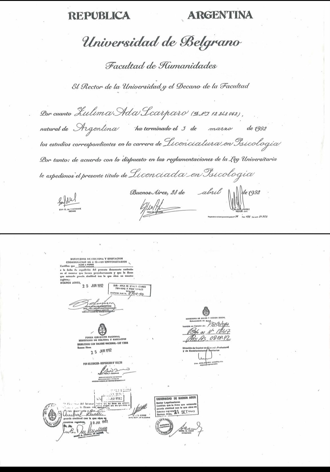 - Licenciada en psicología en 1992
