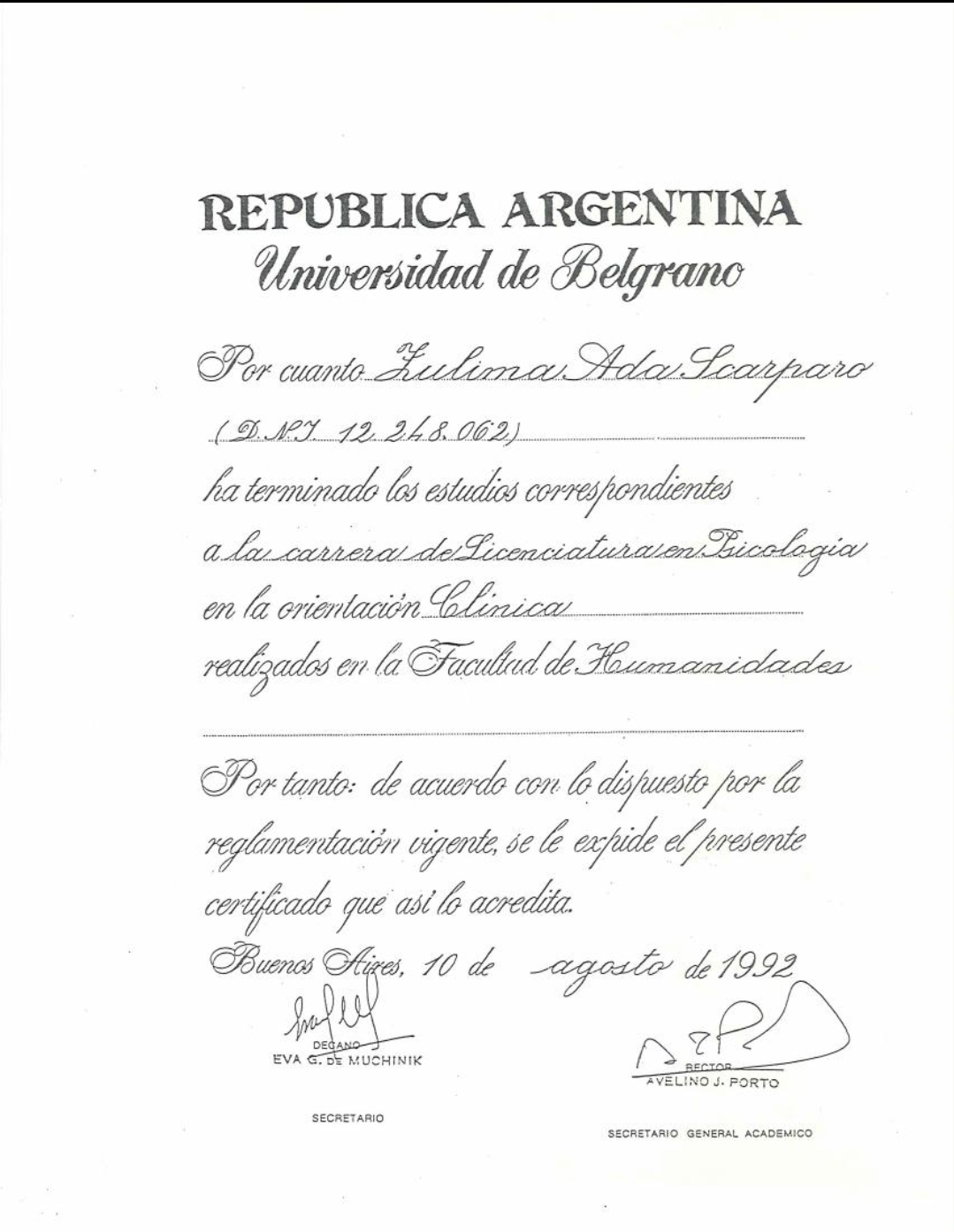 - Universidad de Belgrano en 1992