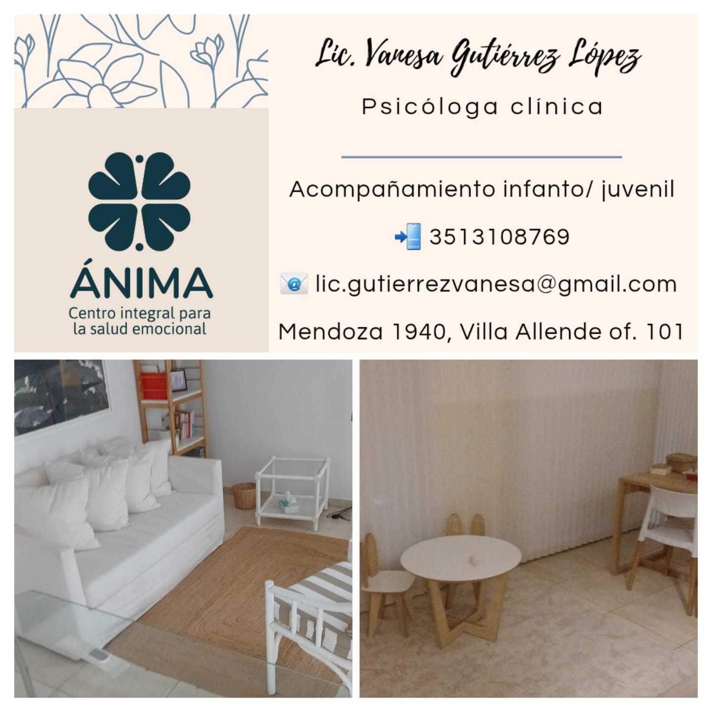 Especialista en terapia cognitiva y conductual, trabajo con niños y adolescentes, jóvenes. Encargada del Equipo de Orientación Escolar en Institución, asesoramiento pedagógico a familias e Instituciones.