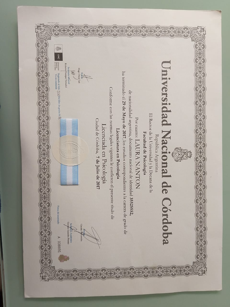- Lic. en Psicología en 2017