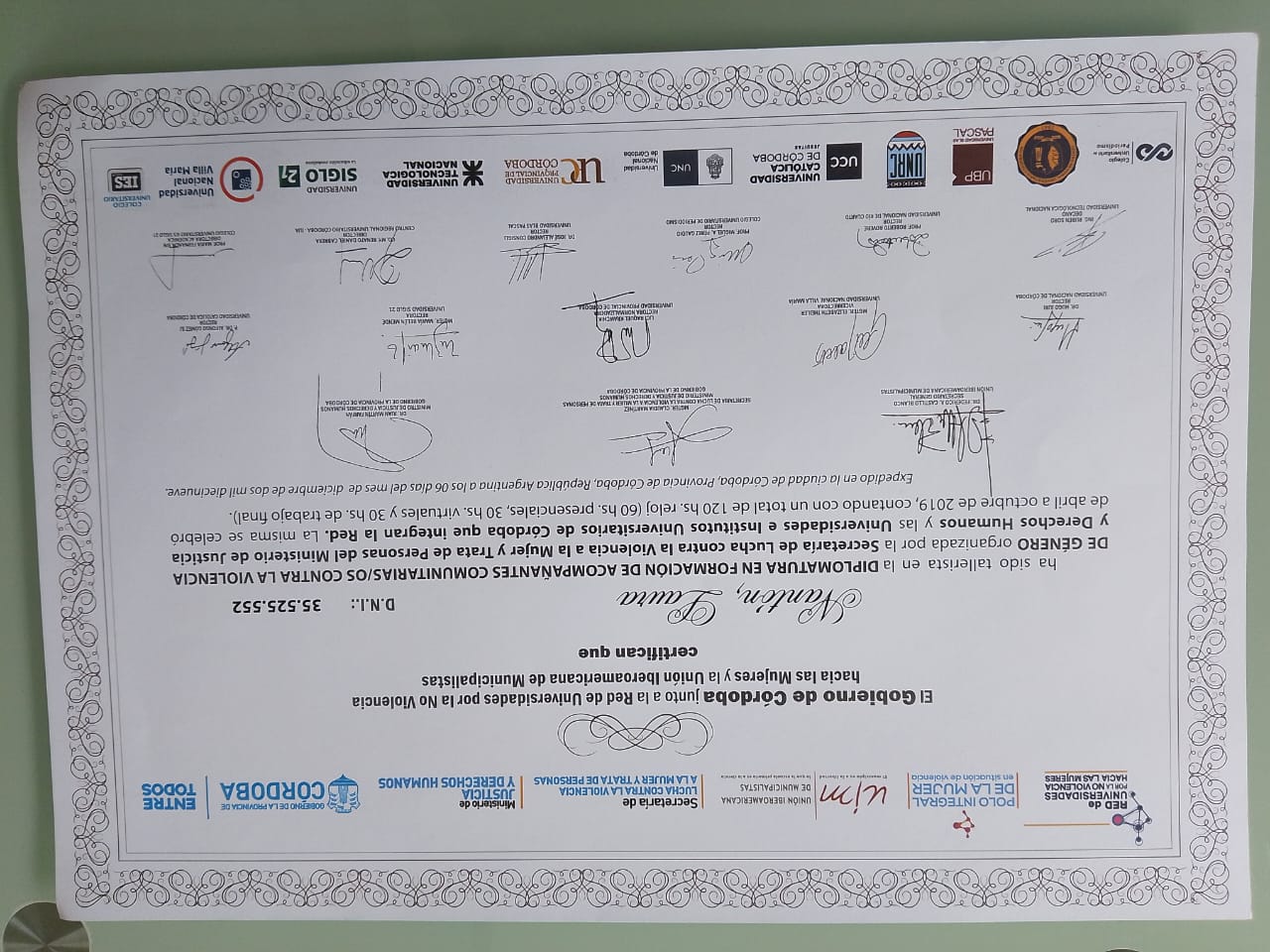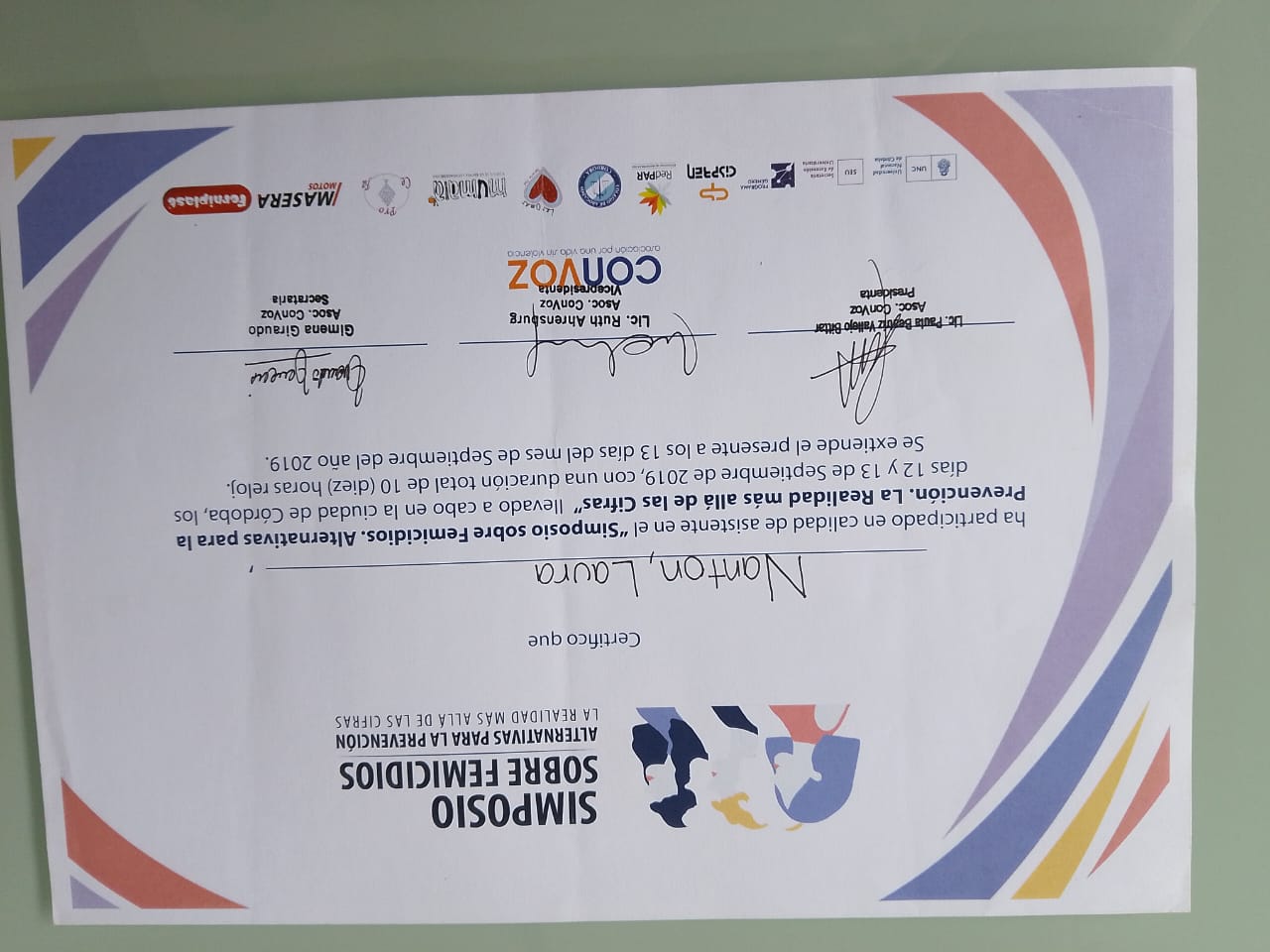 - Certificado Simposio sobre femicidios desde 2019