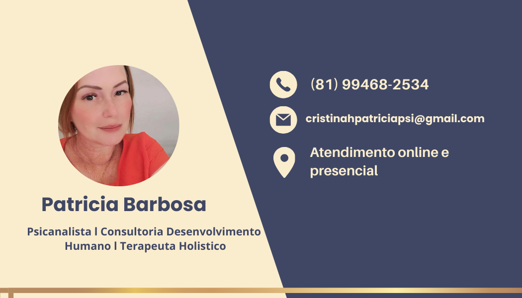 Sou Patricia Barbosa – Psicanalista e Terapeuta Holística, e criei a Terapia do Feminino, um espaço acolhedor e sem julgamentos, pensado para mulheres que carregam sobrecarga, viveram ou vivem relacionamentos abusivos, enfrentam pressões no trabalho e na vida pessoal, e precisam falar das suas dores com liberdade.