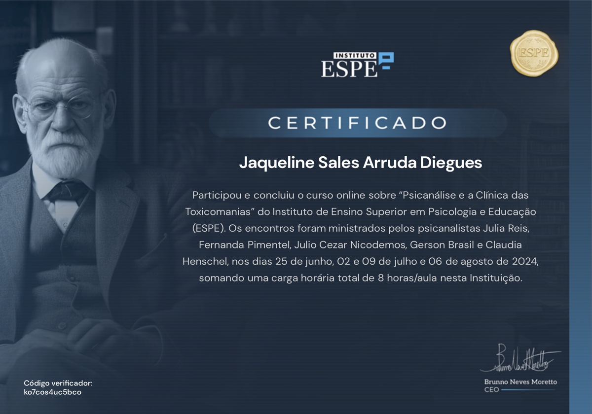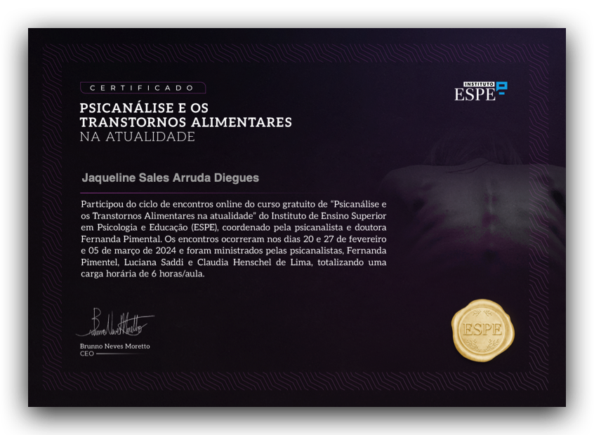 - Certificado Instituto ESPE - Psicanalise e Transtornos Alimentares na Atualidade desde 2024
