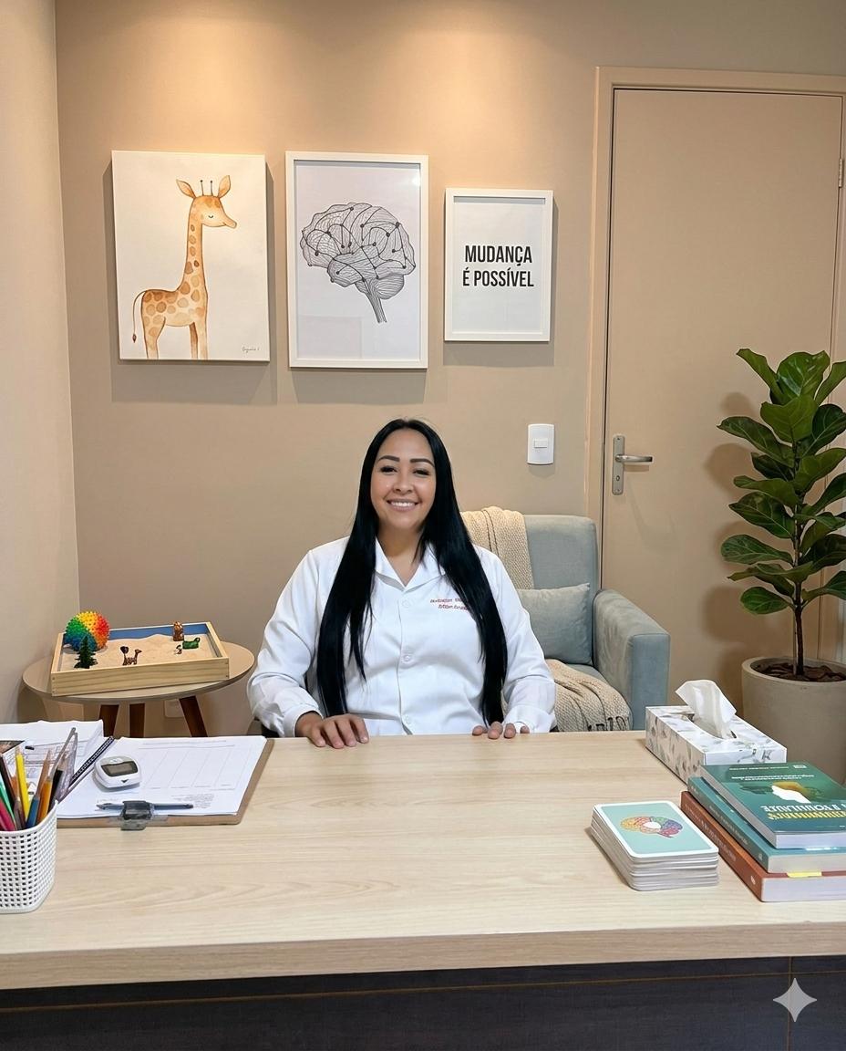 Psicóloga clínica com atuação voltada para adolescentes e adultos, com foco no tratamento da ansiedade, crises de ansiedade, pensamentos acelerados, insegurança e sobrecarga emocional.