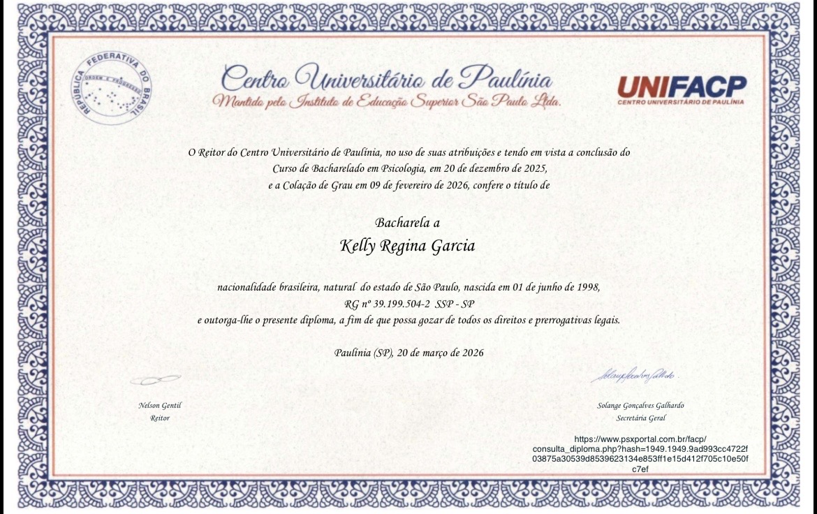 Sou psicóloga com atuação baseada na Terapia Cognitivo-Comportamental (TCC) e pós-graduação em andamento na área, além de formação em Gestão de Recursos Humanos e Desenvolvimento de Equipes. Tenho experiência em atendimentos online e acolhimento psicológico, com foco em saúde mental e escuta empática.