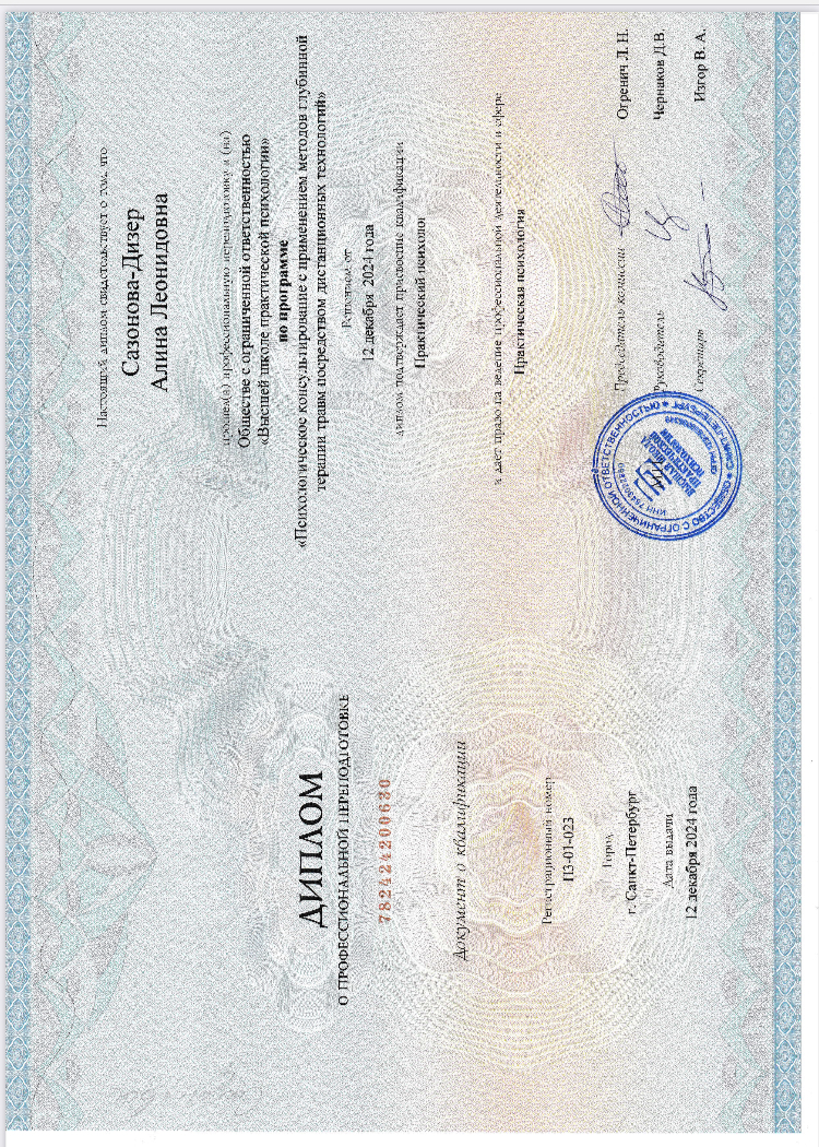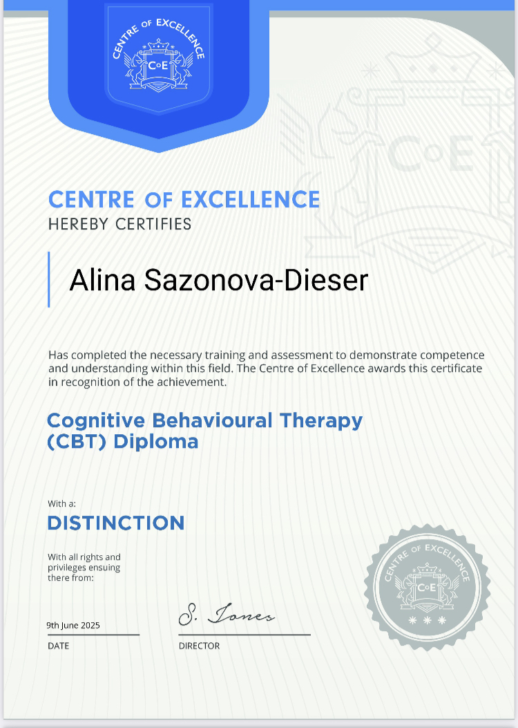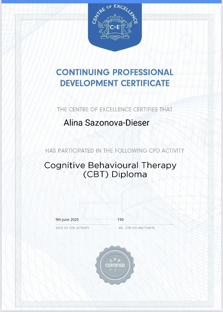 - Сертификат Cognitive Behavioral Therapy с 2025 года