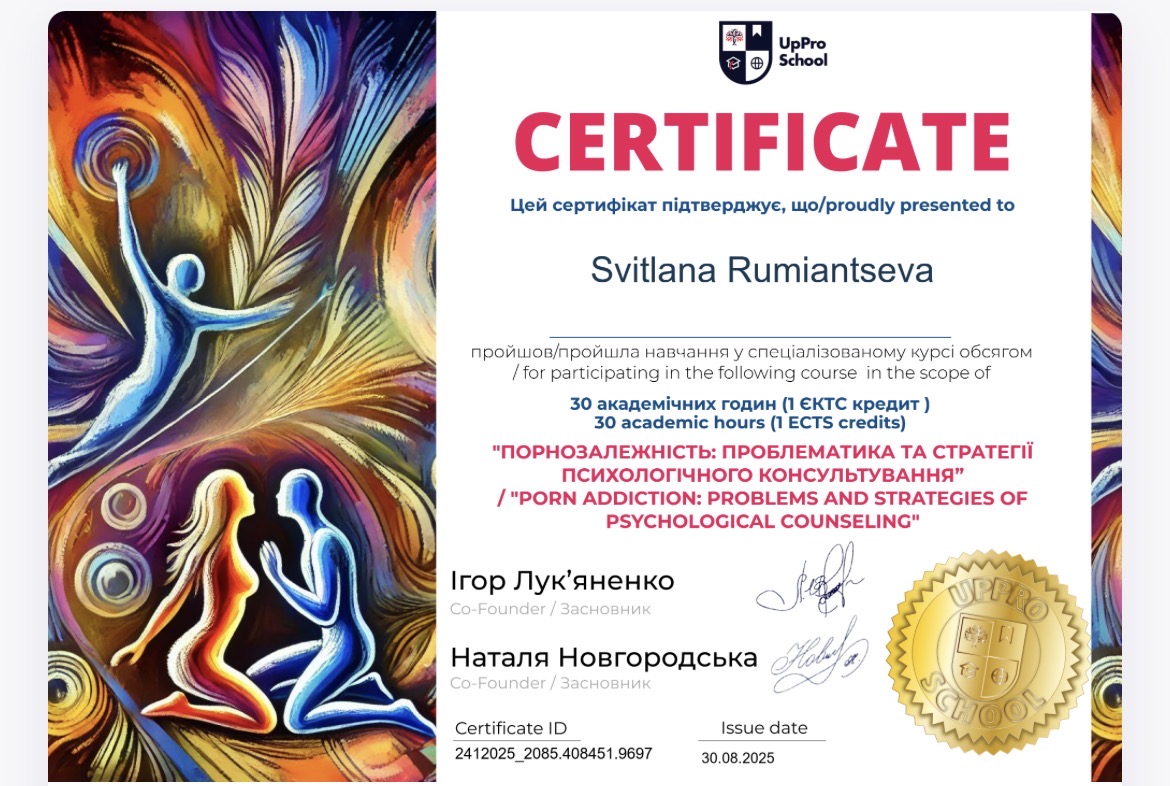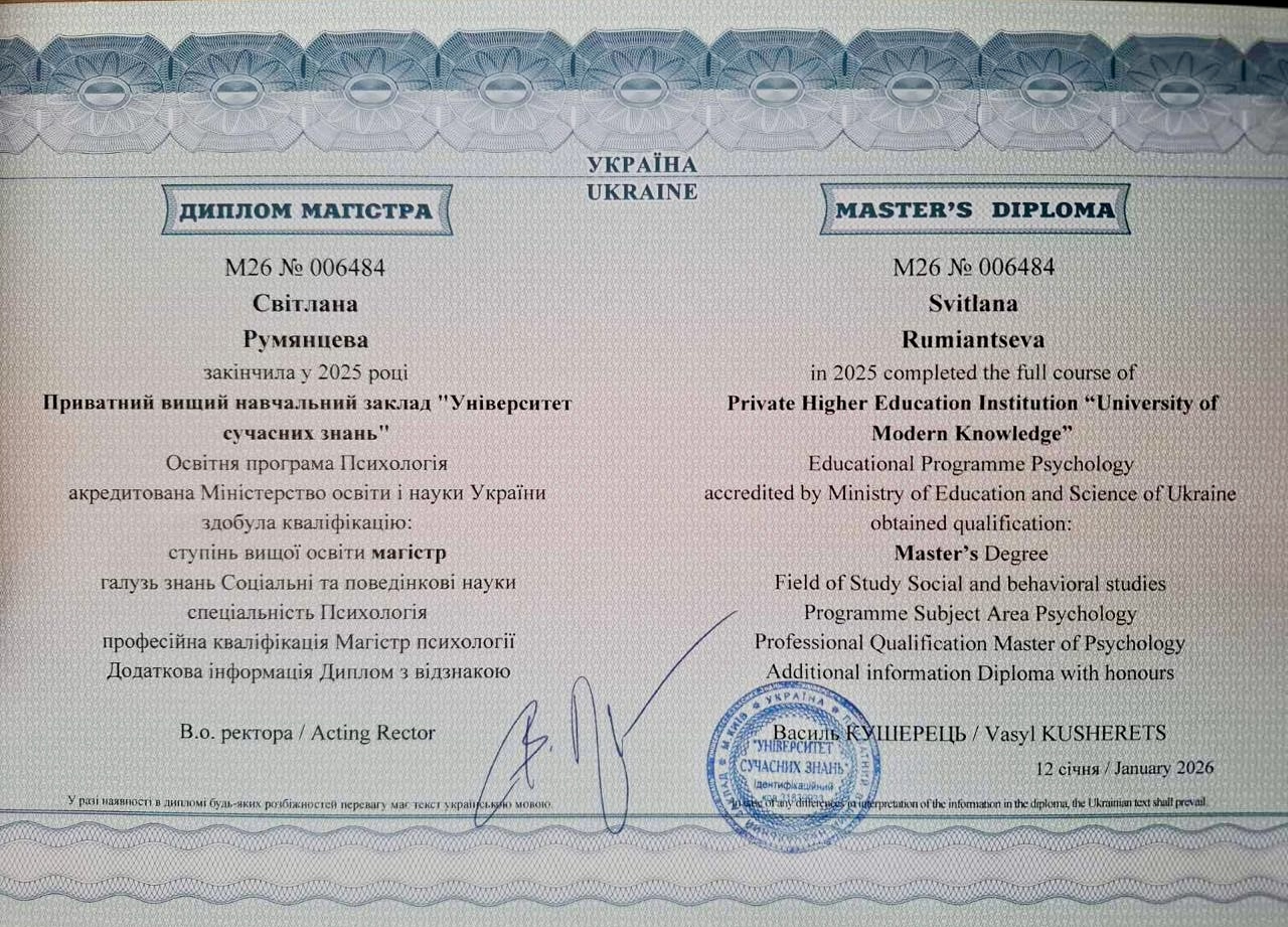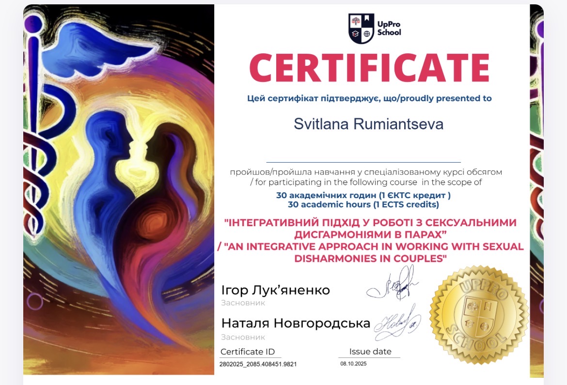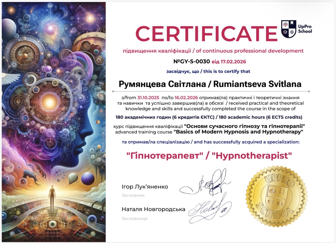 Использую интегративный подход, адаптированный под каждого клиента. Я не работаю по шаблону, я выстраиваю стратегию под вашу ситуацию, потому что понимаю, что именно нужно для достижения результата.