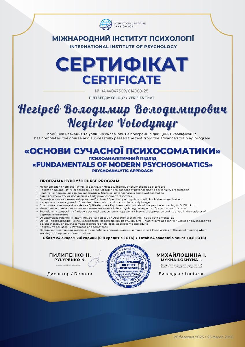 - Сертификат "Основы современной психосоматики" с 2025 года