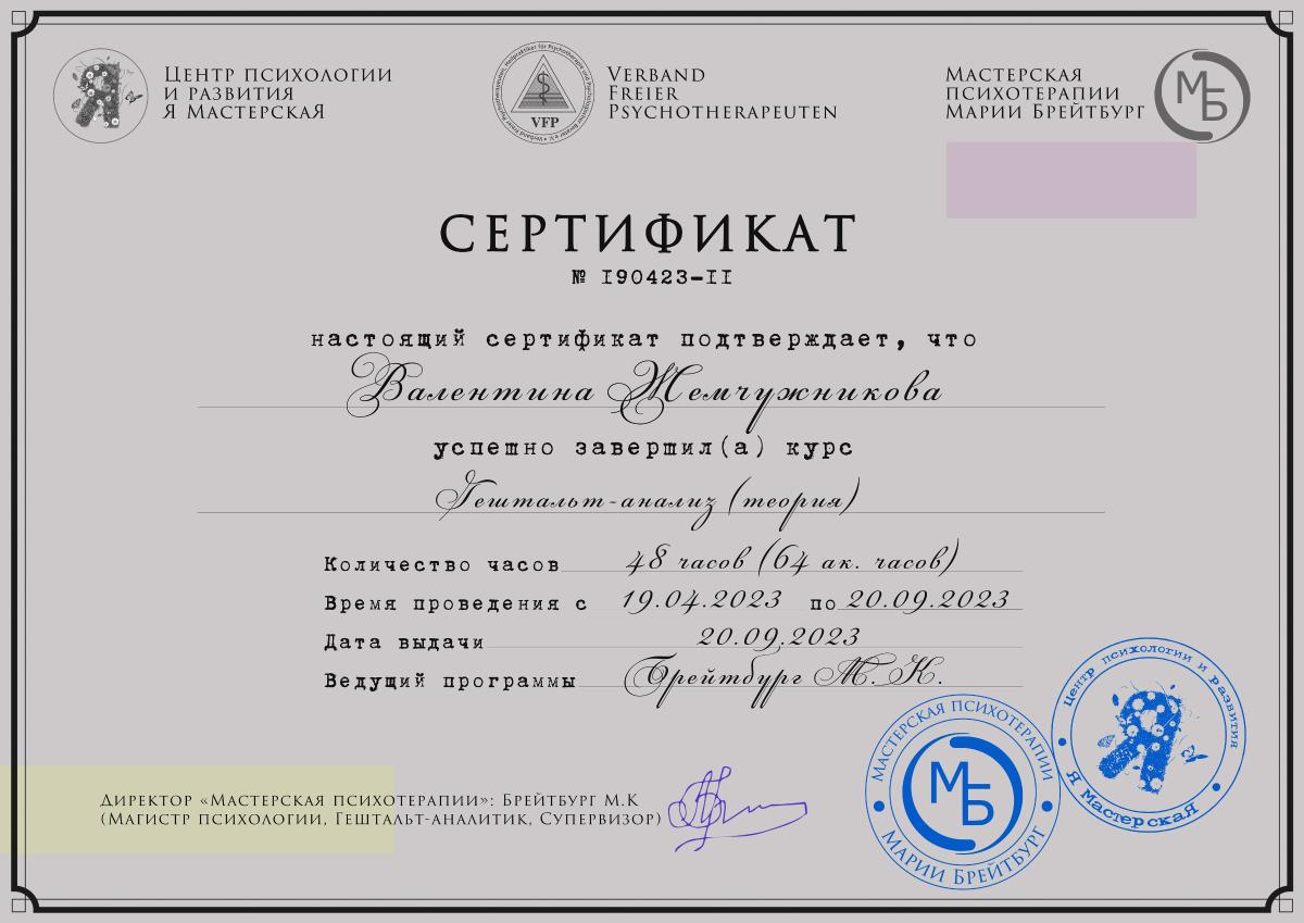 Работаю под супервизией, есть личная терапия.