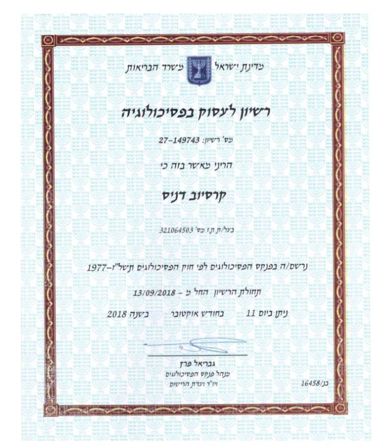 Психолог, MA, LEP (Israel), интерн в области образовательной психологии, лицензия № 27-14974 Минздрав Израиля.