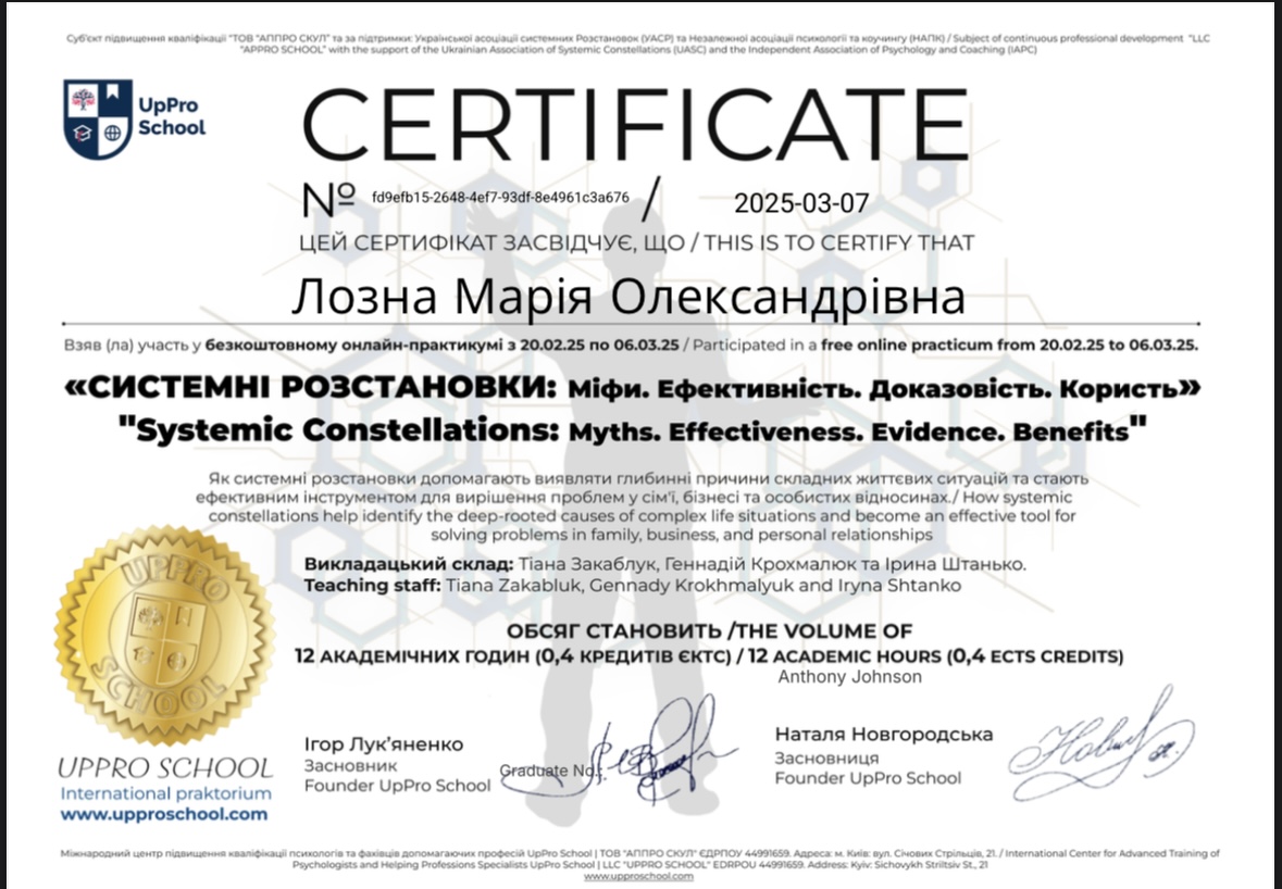 Меня зовут Мария Александровна и я врач терапевт|психотерапевт.